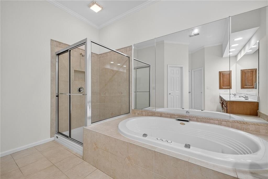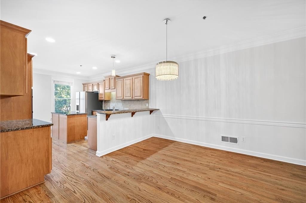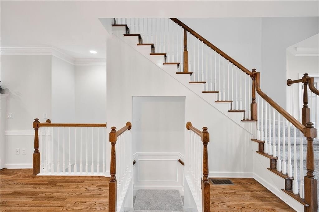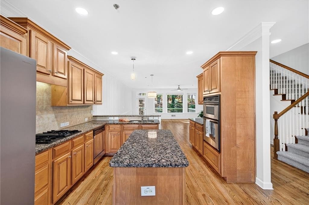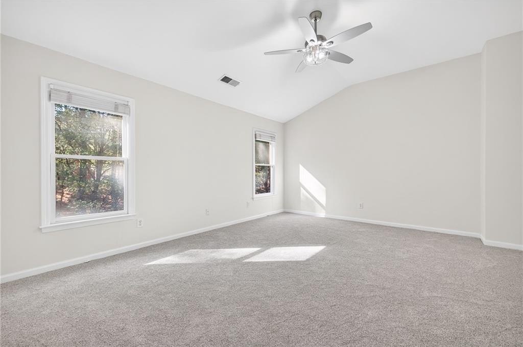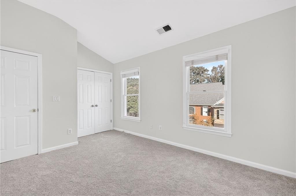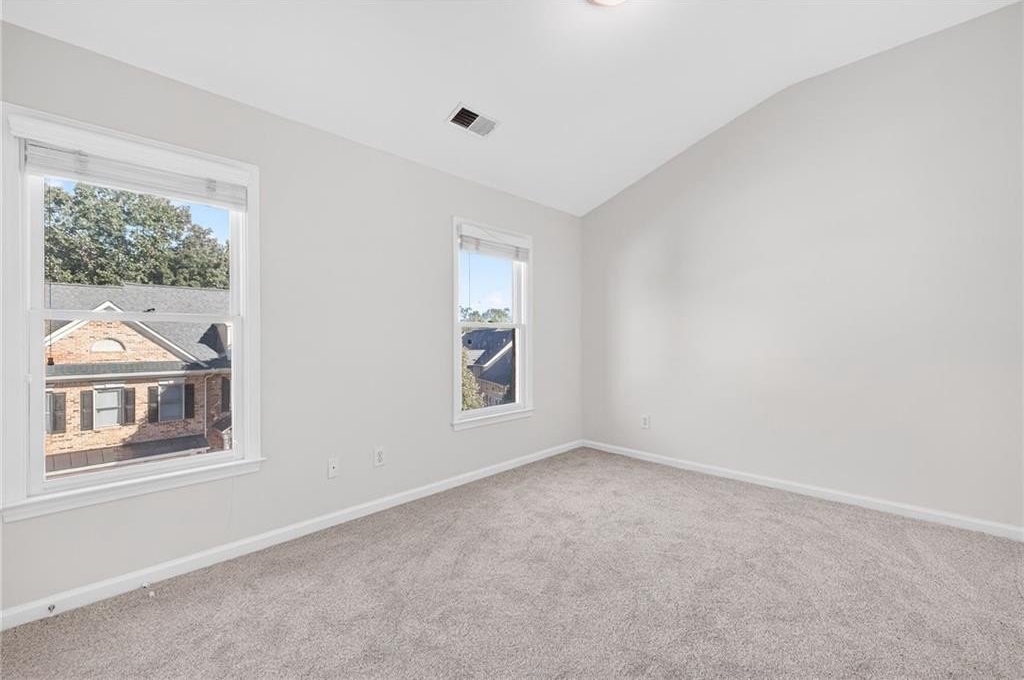 Discover relaxed elegance in this beautifully updated townhome nestled in Smyrna's upscale Vinings Estates community. This home boasts a serene setting with private, wooded views, perfect for unwinding on the new private deck. Step inside to an impressive open floor plan, centered around an enormous great room that gleams with hardwood floors. The entire home feels fresh and new, featuring fresh paint, new light fixtures, and brand new carpet throughout. The oversized master suite provides a comfortable retreat, complete with a generous master bath and a large walk-in closet. Two additional large bedrooms offer fantastic flexibility, as each features its own walk-in closet and a private, attached full bath. Living in Vinings Estates is like being on vacation every day. The community features resort-like amenities, including two clubhouses, 3 pools, a state-of-the-art fitness facility, a playground, 6 tennis courts, 6 pickleball courts, and a basketball court.This convenient location is just minutes away from Whitefield Academy, The Silver Comet Trail, abundant shopping and dining, I-285, I-75, The Battery/Truist Park, and the new Riverview Landing on the Chattahoochee.
