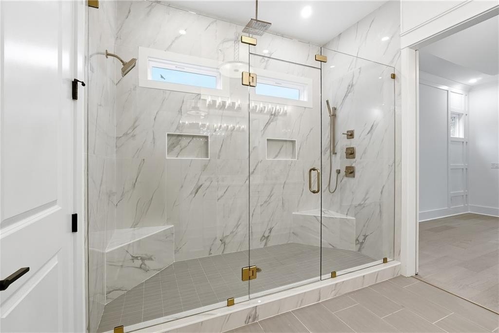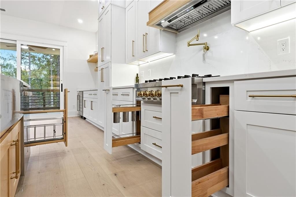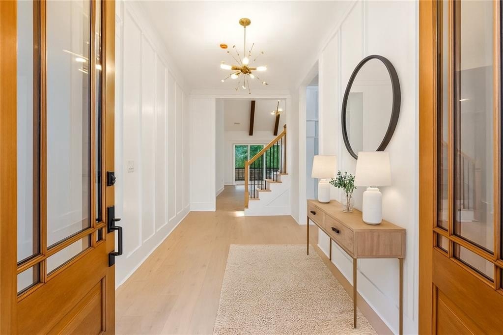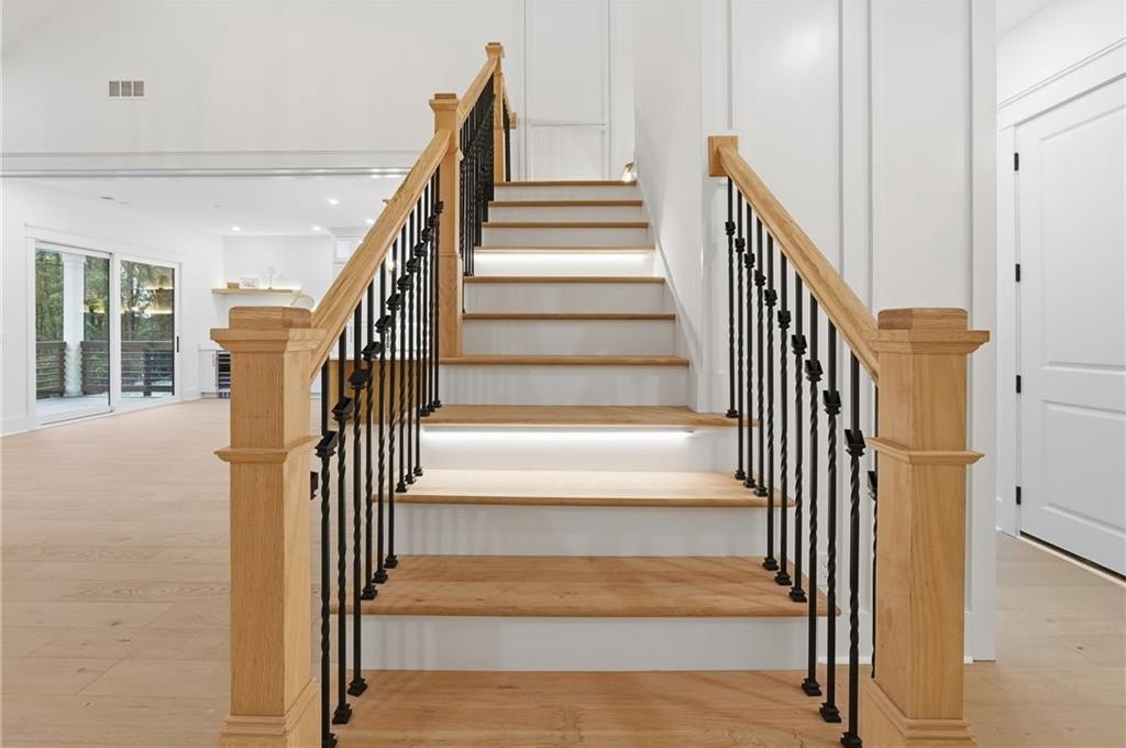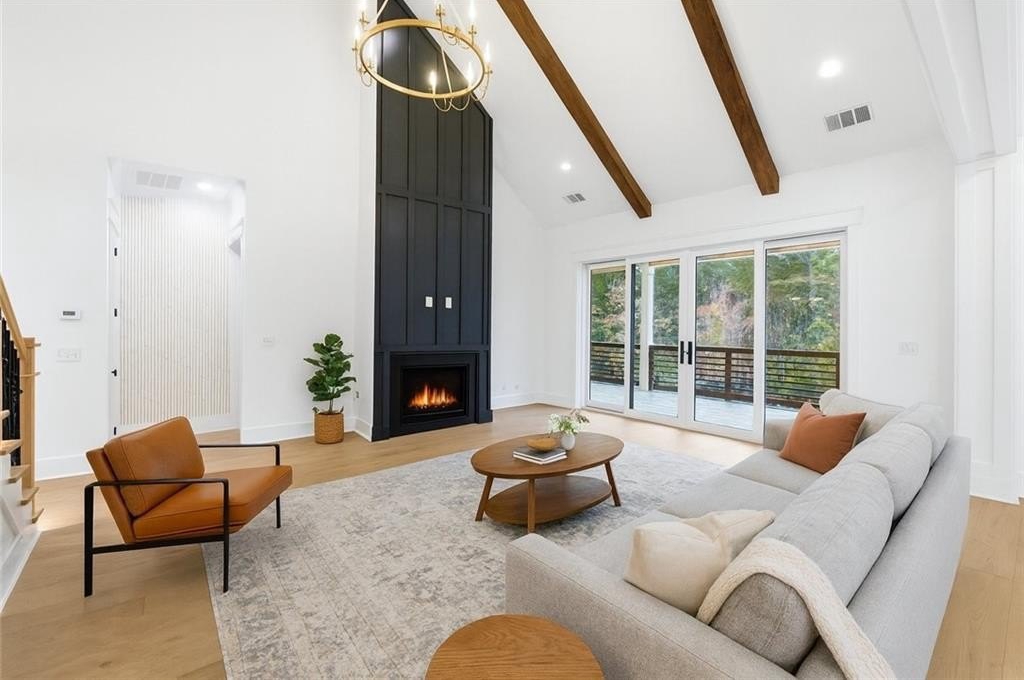 Exquisite new construction home and Seasonal Lake Views! 4BR/4BA plus Bonus room, 4,100 sq ft at 3590 Flemming Drive offers refined Lake Lanier living with seasonal lake views, wooded privacy front and back, a huge backyard, and easy lake access just steps away. Privately situated at the end of a quiet no-outlet street with NO HOA, this home features a charming exterior with board and batten and cement siding for durability and timeless curb appeal. A wide, covered front porch with double doors welcomes you into a soaring foyer featuring elegant detailing and impressive 10-foot-plus ceilings with stained beams, 8' solid doors, designer lighting, wood flooring throughout, a gas log fireplace and walls of glass doors that flood the open-concept living area with natural light. The gourmet kitchen boasts Calcutta Bella quartz countertops, quartz backsplash, farmhouse sink, pot filler, voice-controlled range hood, wine cooler, floating shelves, illuminated ceiling-height cabinetry with glass fronts with soft-close cabinetry and a hidden butler's pantry with second sink, quartz countertop and custom shelving with LED lighting. The main-level primary suite serves as a peaceful and serene retreat, highlighted by a tongue-and-groove ceiling, large glass doors providing walkout access to the covered deck, dual vanities, spa-like finishes, and a spacious walk-in closet. Also on the main level is a versatile office or guest bedroom with vaulted ceiling, featuring stained beams and upgraded crown molding. Upstairs offers a second primary suite, two additional bedrooms, two full baths, and a large bonus room perfect for a media space, playroom, or additional living area. Enjoy outdoor living on the ~500 sq ft deck with a covered porch, tongue-and-groove ceiling, and gas line for grilling or heaters. The open daylight basement features LVL beams, French doors, 8 windows, and endless potential for finishing, already stubbed for a future bathroom. Additional highlights include laundry on main, side car side garage with EV car charging port, oversized concrete driveway for boat/RV parking, high-speed internet, Tankless water heater and county water. Backs up to Corps of Engineers land with access to kayaking, canoeing, swimming, and trails. The home is fully finished, move-in ready and waiting for you! Don't miss this rare opportunity for luxury lake life. In great Location, conveniently located, it's just 5 minutes to GA 400, 5 minutes to Tidwell Park boat ramp, 13 minutes to the new Cumming City Center, 15 minutes to The Collection at Forsyth, and less than an hour from Atlanta Airport. Seasonal lake views with Lake access, no dock or permit.