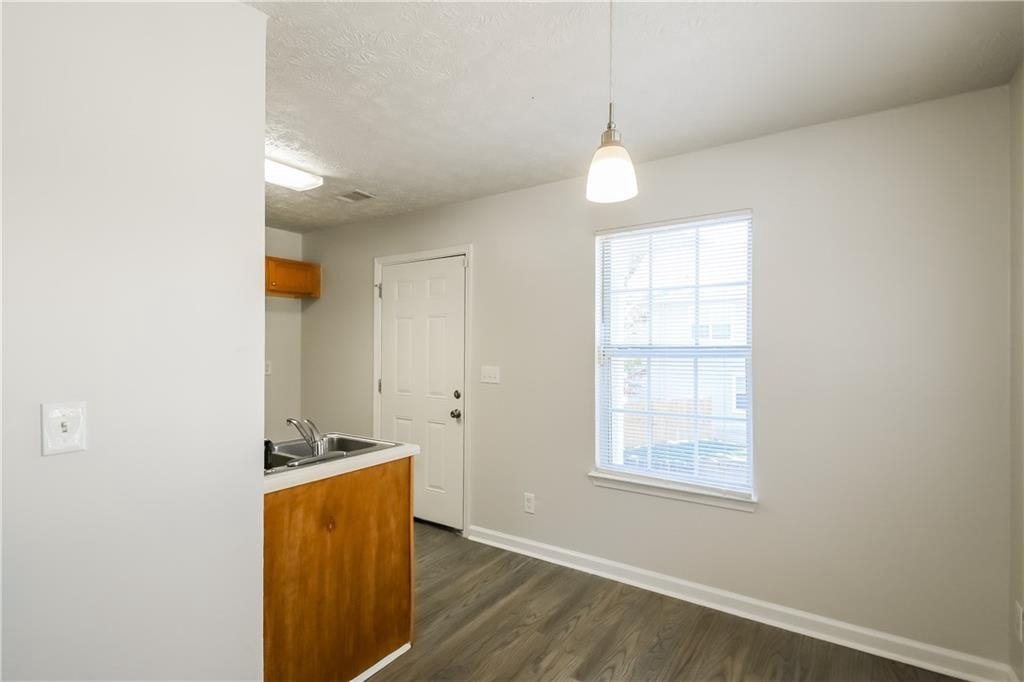Welcome to 71 Thayer Avenue SE in Lithonia, a single-story ranch built in 2001, offering 1,066 square feet of comfortable living space on a 0.18-acre corner lot. Enter into a bright living area graced with hardwood floors that flow seamlessly into a dining space enhanced by luxury vinyl. Fresh paint sets a modern tone as you move through the layout, where three bedrooms and two full baths deliver both functionality and ease. The kitchen displays stained cabinetry, laminate counters, and efficient flow toward the dining and living areas. The primary suite provides a private escape with an attached full bath, and walk-in closets add convenience. Outside, a front porch presents an inviting transition to the outdoors, while a fully fenced backyard with a wood outbuilding offers privacy and flexibility for storage, hobbies, or relaxation. Parking is handled via a driveway, and there is no HOA. Nestled within Historic South Atlanta and close to downtown, public transit, parks, and schools, this home blends city access with neighborhood peace.