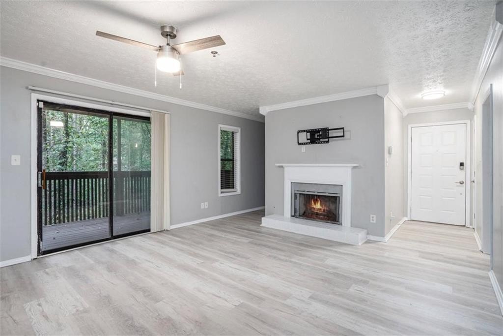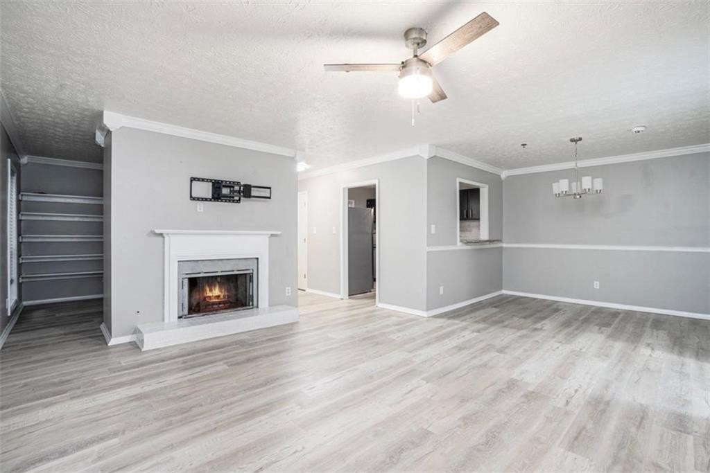 RENTAL PERMITS AVAILABLE! This private, terrace level, move-in ready condo is located in a prime location. Featuring a modern kitchen complete with shaker cabinets, granite countertops, stainless steel appliances, breakfast bar with a view to the living room.! A floor to ceiling window brings in natural light. The spacious living room boasts a gas fireplace, and separate dining area. With Luxury vinyl floors throughout. The oversized primary bedroom features a walk-in closet and an en-suite bath. The second bedroom is great for your roommate or guest. This unit is being sold with a washer and dryer. For extra convenience, there's an additional bonus room with bookshelves, that can be used as an office or for storage. Step out to the terrace level, private patio. Don't miss out on this incredible opportunity!