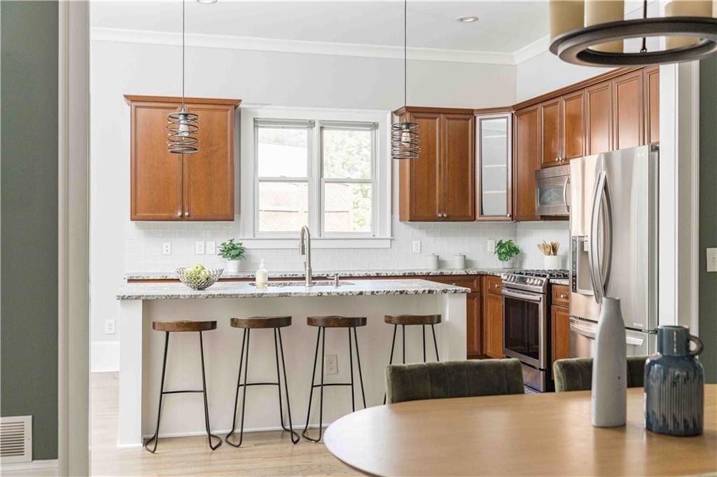 This beautifully updated tri-level townhome offers the perfect blend of warmth, flexibility, and community. Enjoy a bright, open kitchen with granite countertops, stainless steel appliances, and a spacious island that flows naturally to both a large back deck for entertaining and a private covered porch off the living room. Upstairs, the primary suite feels like a retreat with vaulted ceilings, dual walk-in closets, and a renovated spa-inspired bath featuring a sleek glass shower and double vanity. Two additional bedrooms, a hall bath, and convenient laundry room complete the top level. The versatile terrace suite, with full bath, is ideal for guests, a home gym, or office. Residents love Olmsted’s tree-lined streets, gazebo-style central park, and neighborly spirit—a throwback to the days when folks waved from their porches and knew each other by name. Just steps from Drew Charter, Charlie Yates Golf Course, and East Lake Golf Club, and close to Kirkwood, Decatur, and the Eastside BeltLine. You have just reconnected to comfortable living. Welcome home!