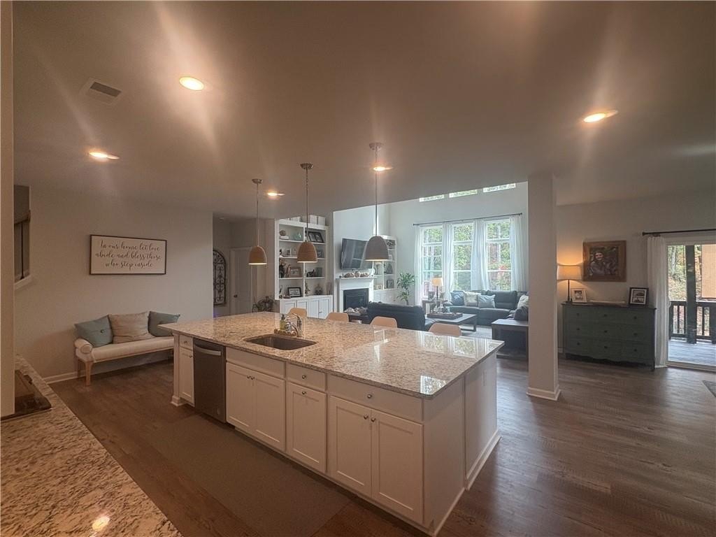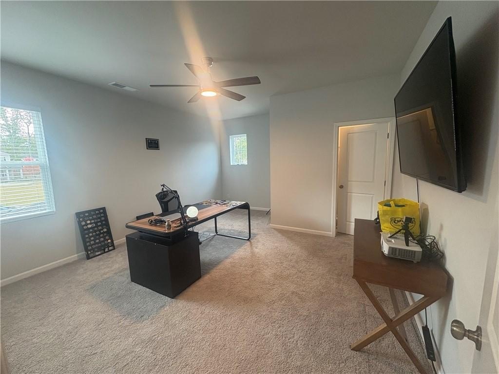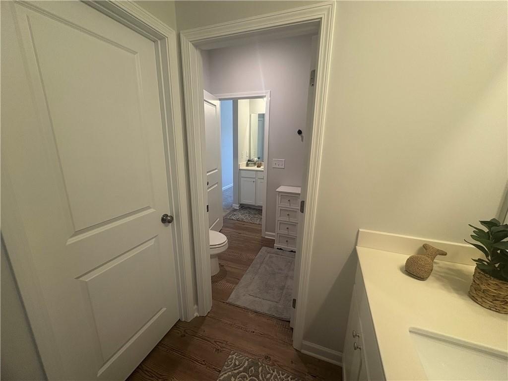 Beautiful like new home in quiet community. Inviting front porch welcomes you to this charmer. Just off the entry you will find an bright and airy office with French doors and half bath. Just down the hallway opens to a large kitchen that overlooks a spacious two story great room with oversized windows highlighting beautiful fenced backyard. Master on the main is just off the great room and is oversized with a large, private bath and huge walk in closet. Additional main level features include a custom walk in pantry with cabinetry and butcher block counters, laundry room with loads of storage and access to covered rear porch. Upstairs features large open loft, 4 bedrooms all with walk in closets, and 3 more full baths. All this and more on a full unfinished daylight basement. Located in Hall county and just minutes from Mall of GA