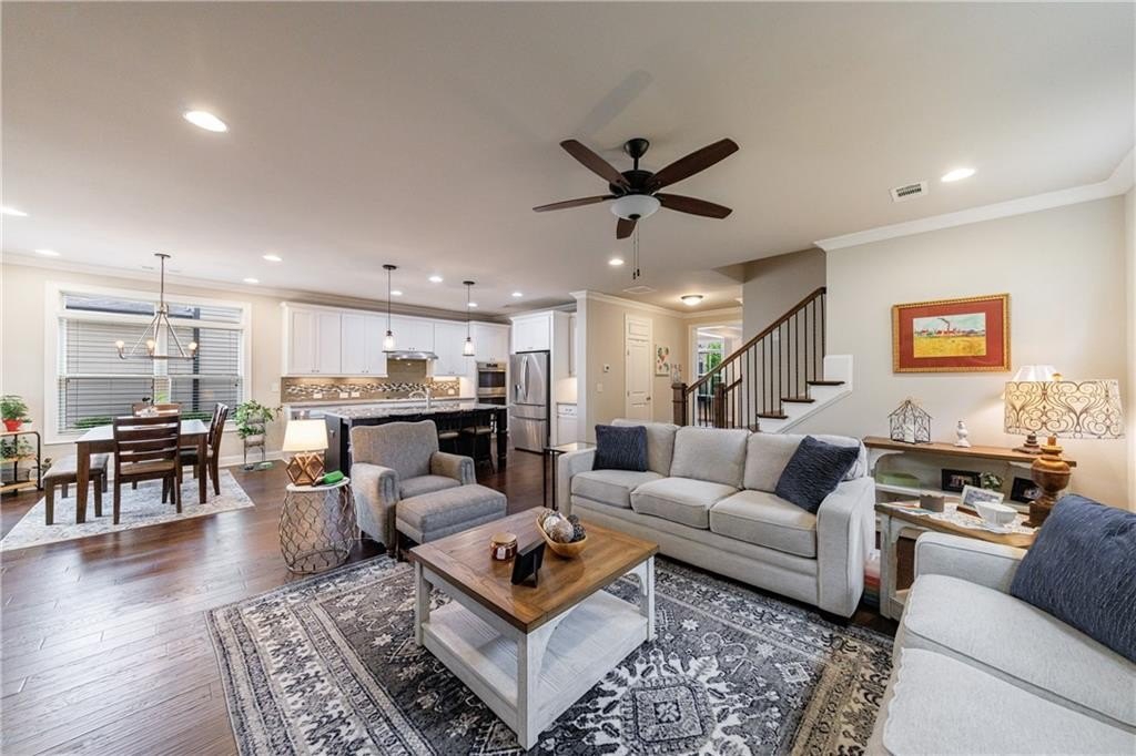 This home showcases the sought-after Raleigh floorplan, complete with a third-floor upper level and an abundance of flexible living space. The main level features a versatile flex room with an attached full bath—perfect for a home office or guest bedroom. A spacious open dining area sets the scene for both casual meals and formal entertaining.