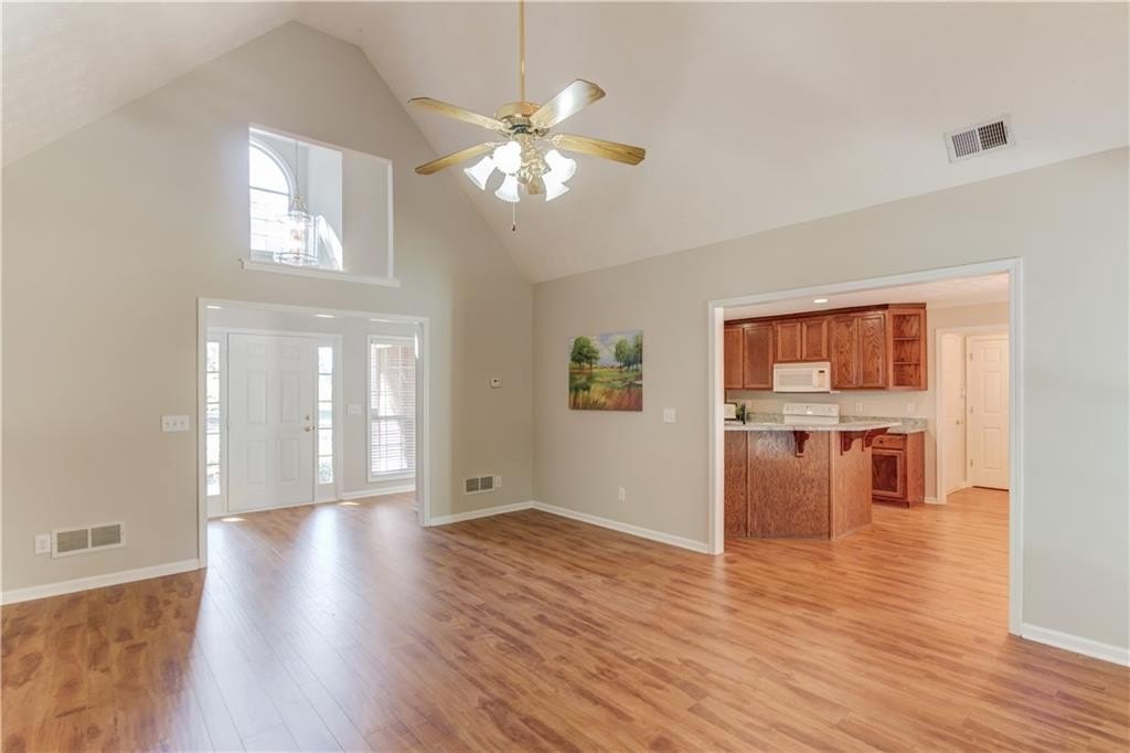 Welcome to 3980 Lakeside BLVD your beautiful, move-in ready, ranch home in the highly sought after Woodlake Country Club. This single level living home is situated on a private lot across from the golf course and pocket park along lakeside boulevard. This home wows with its low maintenance brick and vinyl exterior on a very level lot. Entering the home, the open floor plan boasts all new paint, luxury vinyl plank flooring, new carpets, updated fixtures, new granite and quartz counters throughout. The well appointed split bedroom plan features vaulted ceilings and generous closets. The kitchen is large and open for entertaining and cooking. The primary bedroom is on the main floor leaving the only reason to go up the steps is to enjoy the large bonus room and additional bath. The seller also has recently put on a new roof, new hvac, and a new hot water heater. Don't miss out on this beautiful home.