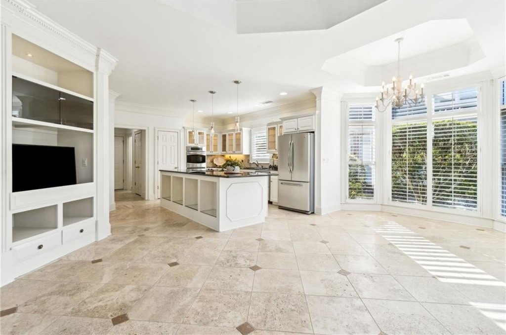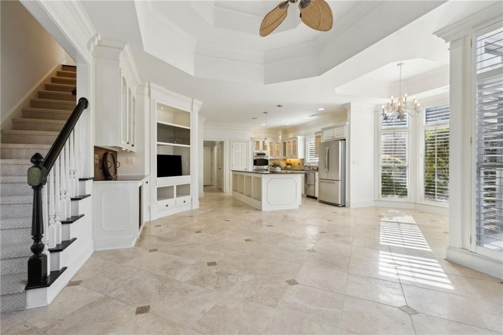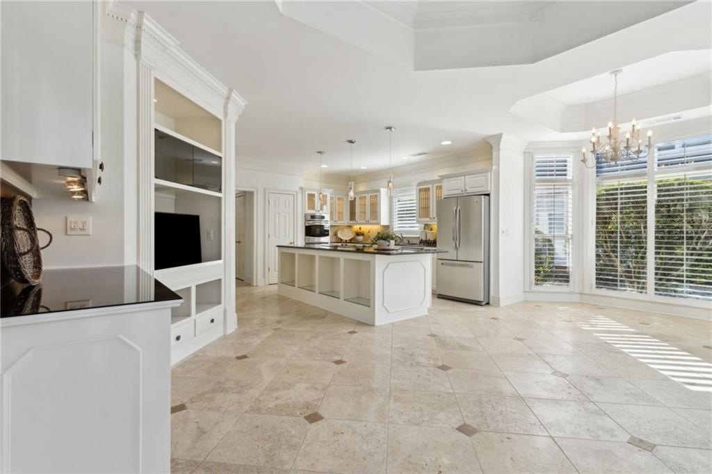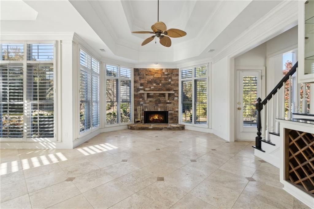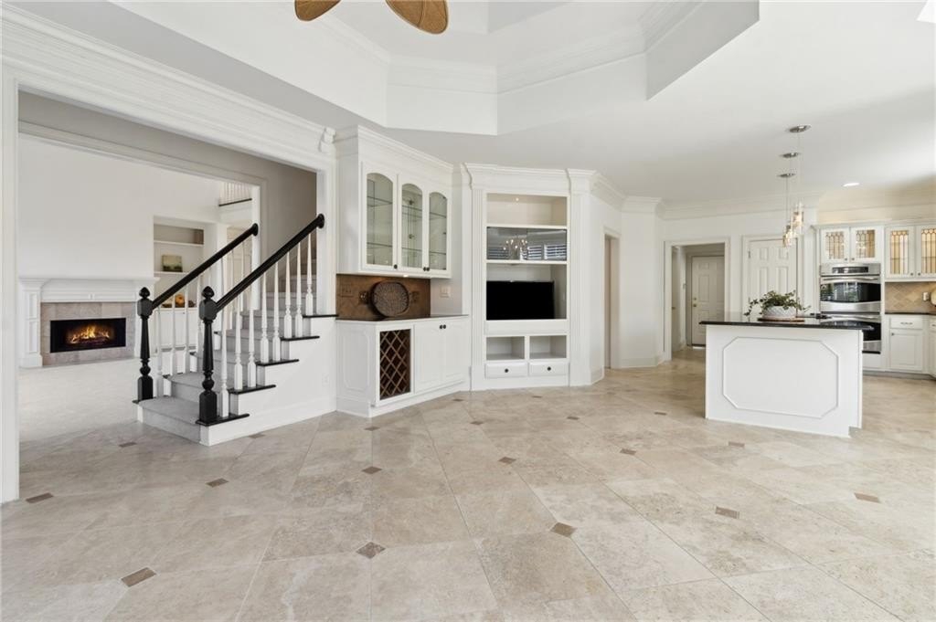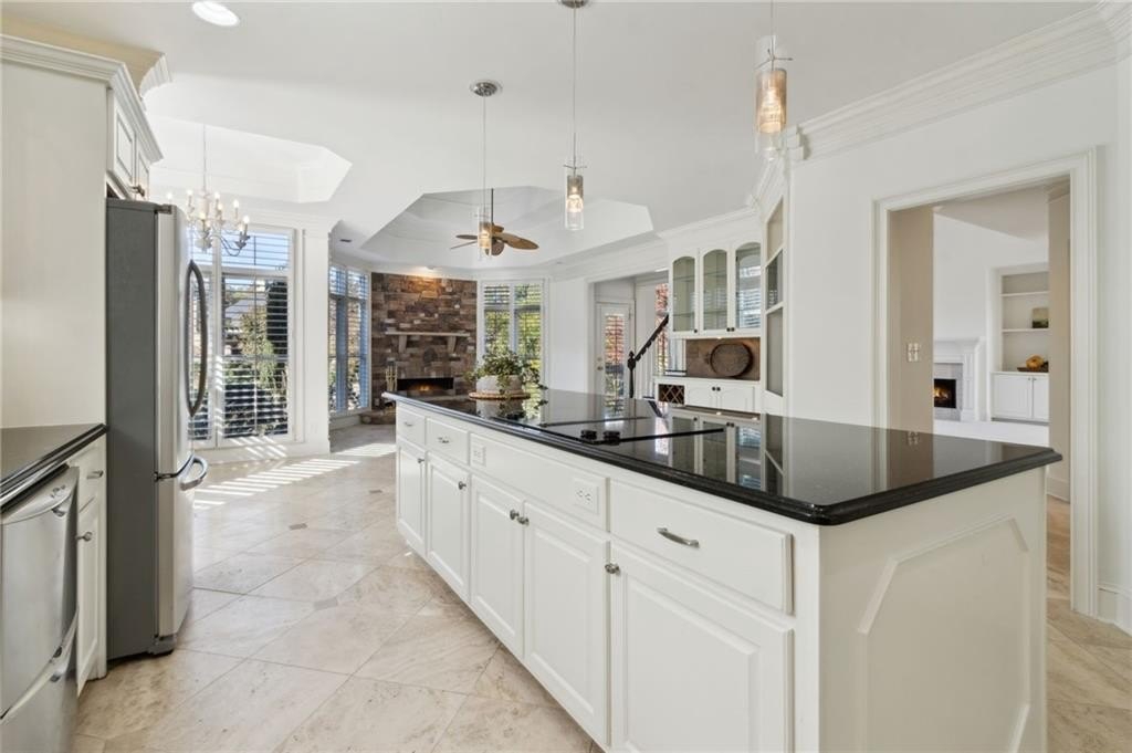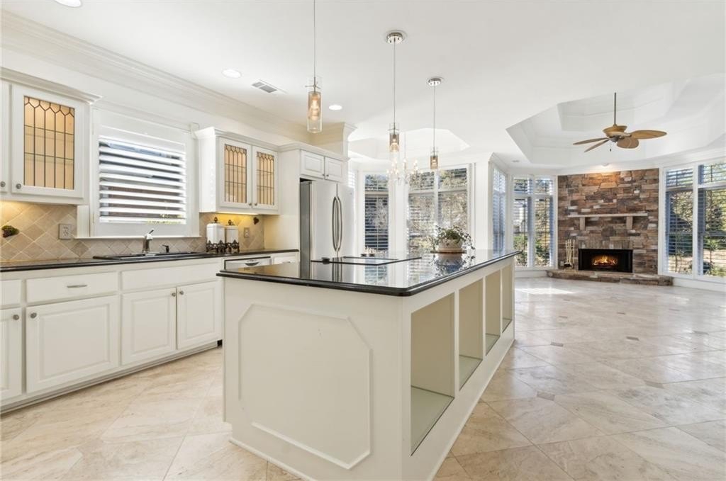 Welcome to your dream home nestled in the breathtaking community of Ammersee Lakes on the Chattahoochee River, where luxury meets nature. This lakeside residence is not just a place to live; it's a lifestyle enriched by serene surroundings and an ever-changing canvas of natural beauty. Ideally located on a tranquil cove with enchanting views of both narrow and open water, this home is one of a few in this community that boasts a waterside deck and a rear patio. These outdoor spaces inspire you to entertain with friends or unwind and soak in the seasonal beauty. Step inside to a grand two-story foyer that sets the stage for the elegance and warmth that define this home. The spacious two-story living room, open to a formal dining room and crowned by a catwalk balcony, offers a breathtaking view through a wall of windows that frame the stunning landscape beyond. The owner's suite on the main level of the home is a true retreat. Enjoy direct access to the rear patio, where you can sip your morning coffee while experiencing the sound of a beautiful fountain, the perfect backdrop for relaxation and rejuvenation. With a high tray ceiling and a spa-like bath featuring a double vanity and two walk-in closets, this suite offers an oasis of comfort and luxury. The heart of the home is a large chef's kitchen featuring an island, a breakfast bar, abundant cabinetry, and a breakfast area with a picturesque view of open water with a fountain. An alluring keeping room with a stone fireplace and beautiful lake view completes this culinary haven, making it the perfect space for gathering with family and friends or a cozy evening by the fire. Upstairs, you will find three generously sized bedrooms, including one with its own private bathroom, and two sharing a Jack-and-Jill bath. An additional finished room over the garage provides endless possibilities- be it a home office, playroom, or man cave. At Ammersee Lakes, you will enjoy a vibrant community with pristine lakes, a cascading waterfall, charming gazebos, rustic stone and wooden bridges, and a scenic nature trail as beautiful as a city park. The community also offers a swimming pool, tennis and pickleball courts, and a Chattahoochee River overlook, along with lawn care services included, allowing you to spend more time enjoying your surroundings and less time on maintenance. Located in the heart of Johns Creek, this home offers unparalleled convenience with easy access to major malls, shopping venues, entertainment hotspots, and restaurants. Additionally, you will find prestigious golf clubs such as the Atlanta Athletic Club, St. Ives Country Club, and the Country Club of the South nearby, along with top rated schools, making it an ideal setting for families. Experience the perfect blend of elegance, comfort, and nature in this stately home at Ammersee Lakes. Whether you're seeking a peaceful retreat or a vibrant community lifestyle, this property offers it all. Don't miss the opportunity to make this beautiful residence your home! Contact us today for a private showing and discover the lifestyle that awaits you. STUCCO BOND with S.I.R, Inc. TERMITE BOND with Arrow Exterminating.