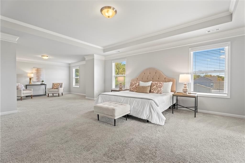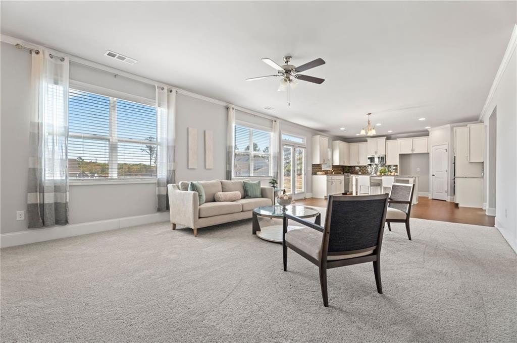 Amazing Opportunity to live in beautiful Genesee Neighborhood in Newnan! The spacious 4 bedroom/4 full bath Westerly floorplan built in 2019 features approximately 4100 sq feet of well-planned living space including a beautiful 2 story living room area connecting to a separate dining room with coffered ceiling. The gourmet kitchen has granite counters, a large center island, an abundance of cabinet space with soft close drawers, stainless appliances including a double oven! Walk in kitchen pantry for storage. Large family room with fireplace has a door to the outside patio and backyard. Also, on the main level is a spacious bedroom with a walk in closet and a full bathroom. Wonderful for visiting guests! Upstairs there's a huge versatile loft area. Two secondary bedrooms have access to a connecting bathroom with double sinks. Laundry Room with ceramic tile floor is located just off the loft area for convenience. One of the many special features of this amazing home is the primary bedroom suite which includes an oversized bedroom area opening to an additional sitting room retreat. The primary bathroom has two separate vanities, 5 ft. soaking tub and a separate tile shower. Plus a fantastic walk in closet! Blinds throughout the home along with living room and family room curtains included with the sale. Home has beautiful natural light and neutral paint throughout! An extra bonus is the mud room area that leads to an oversized 3 car garage! In addition to the 3 spaces for vehicles, there's an approx 10x20 area space that can be used as a workshop or home gym area or finished as an extra room - home office, etc - by adding an interior door from the front living room for access! Homes in Genesee have 1 acre lots so there's plenty of room to add a screened or covered porch, a pool, children's playset & more! Neighborhood amenities include sidewalks, olympic size pool with covered porch clubhouse and 2 playground areas! Golf cart friendly neighborhood. Great schools - Brooks Elementary/Madras Middle/Northgate High School! Easy access to Brooks Elementary from inside the neighborhood. Just minutes from Ashley Park shopping and dining & Serene! You will love this beautiful home and neighborhood!
