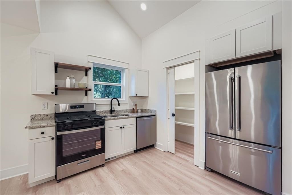 Just renovated top to bottom 3 bedroom 2 bathroom modern craftsman. Vaulted ceilings in every room. Everything is new - windows and doors, appliances, washer dryer, systems (HVAC, plumbing, electrical), granite countertops, white shake cabinetry throughout. Large front deck perfect for admiring the two gorgeous oak trees that shade the park-like front yard. Large back deck perfect for grilling out and overlooking an expansive backyard ready for a fit pit or kids playset. There is a separate 250 sf flex space in the basement that would make a great place for a private office or artists studio. This home is on a quiet tree-lined dead end street but close to exciting new developments and all the restaurants and entertainment the Westside of Atlanta has to offer.