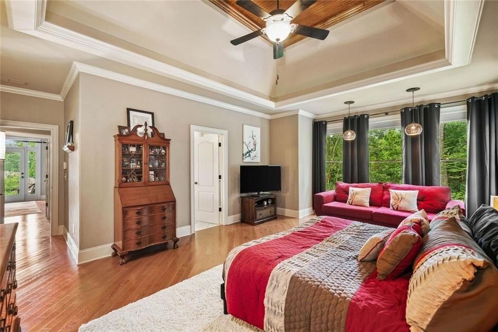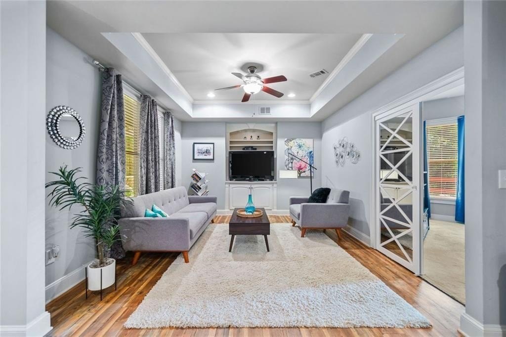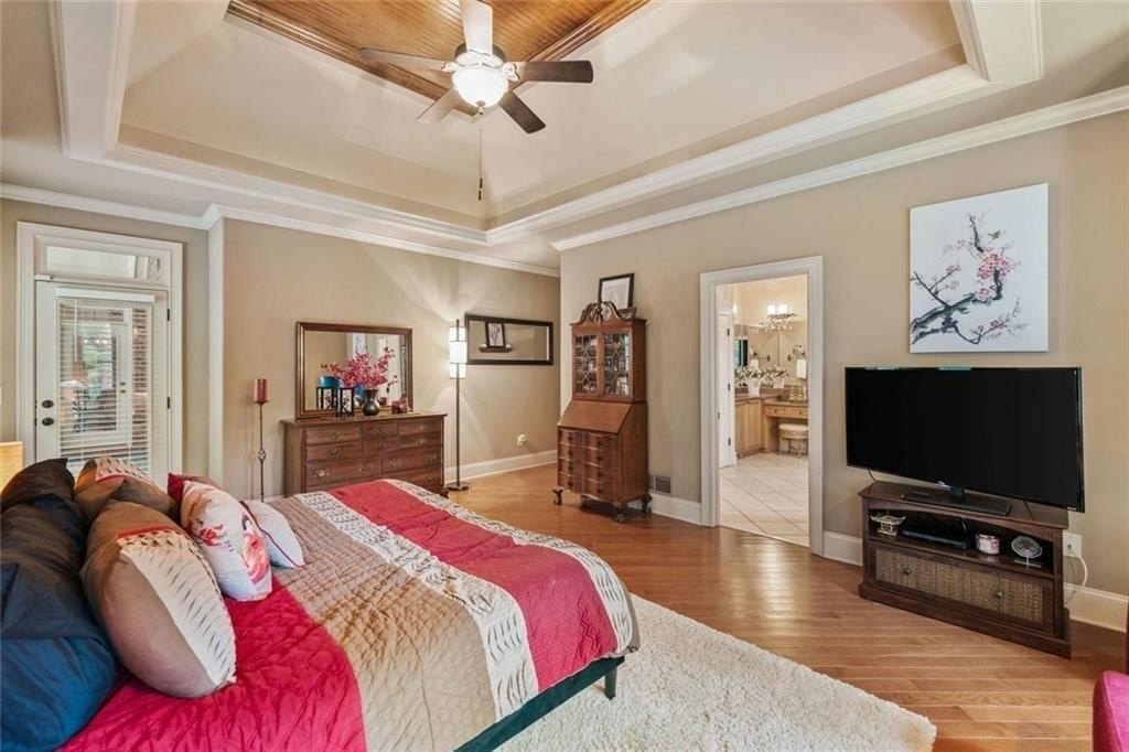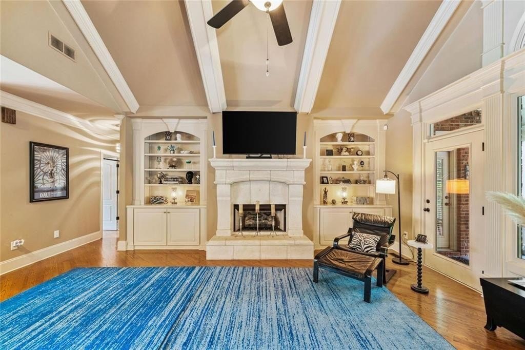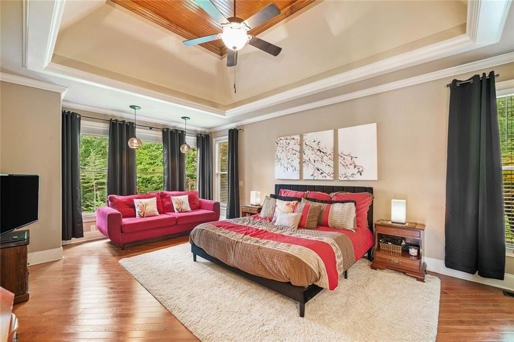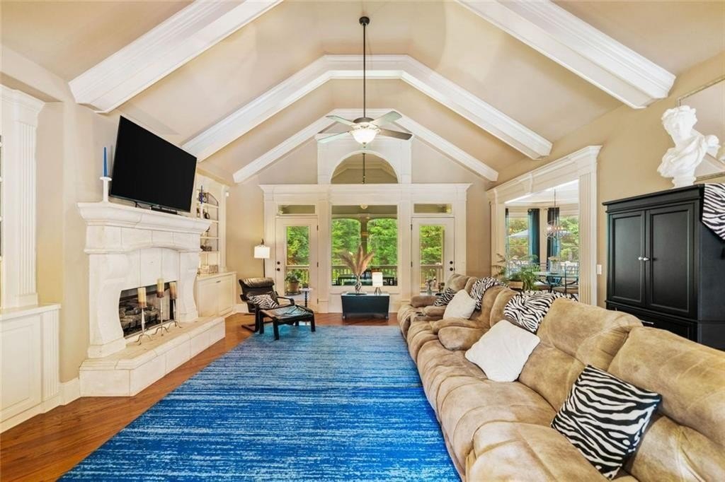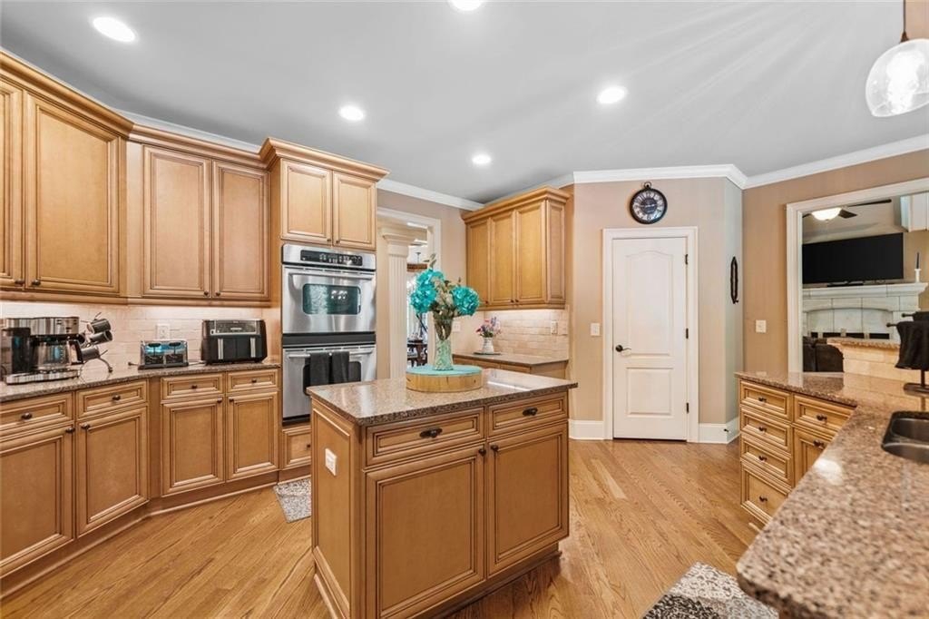 Inside, vaulted and tray ceilings draw your eye to the picturesque windows across both the front and back of the home, flooding the main level with natural light. Hardwood floors run throughout, leading you into a spacious open kitchen featuring granite countertops, stainless steel appliances, walk-in pantry, and a cozy vaulted keeping room with a gas fireplace.