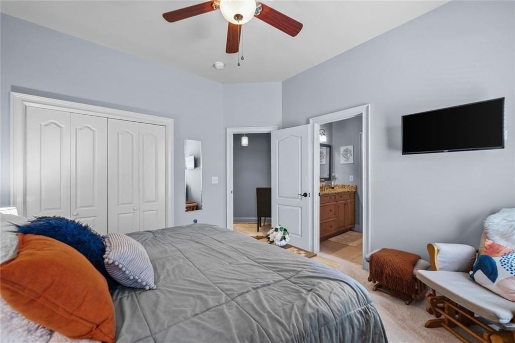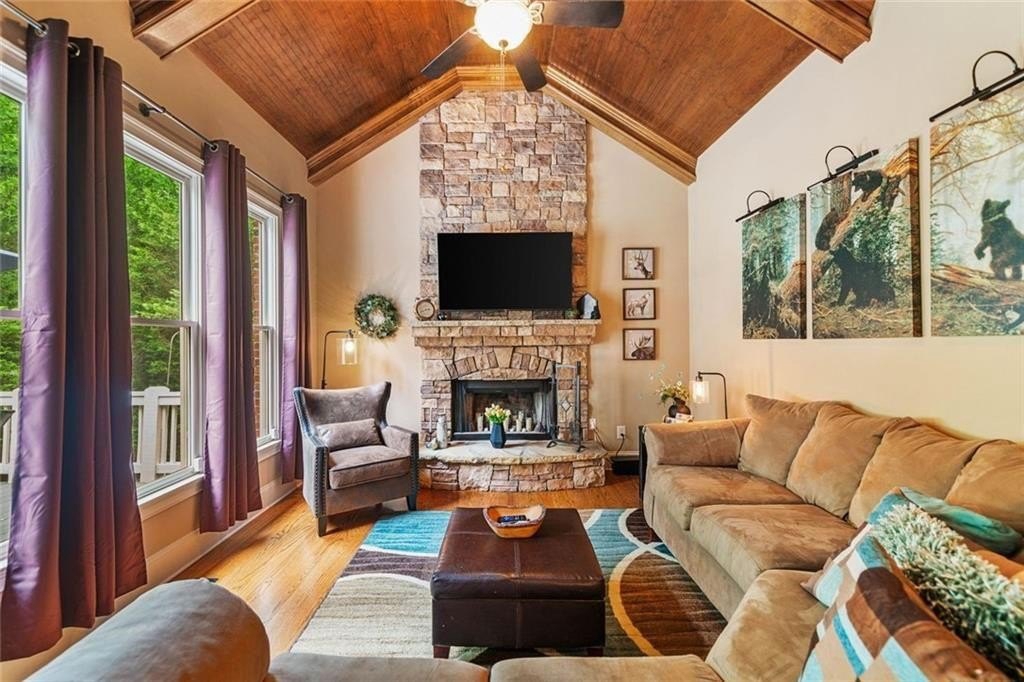 The primary suite offers a peaceful retreat with mountain views, a large soaking tub with jacuzzi jets, a walk-in shower, upgraded lighting, and a designer-built closet. From the screened-in porch and upper deck to the terrace level walkout, every level of this home connects effortlessly to the outdoors.