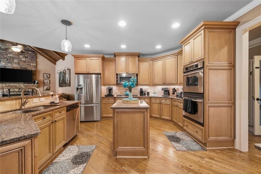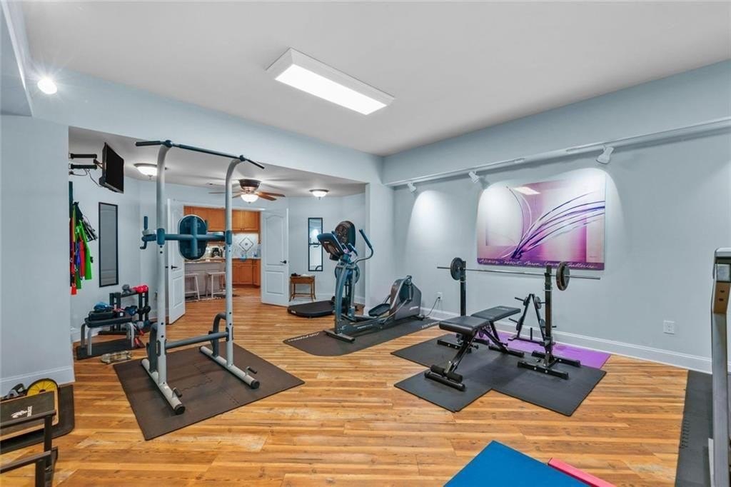 The fully finished terrace level includes an in-law suite with extra kitchen, fitness room with mirrors, media room, workshop, a bolted-down safe, a safe room, and plenty of storage. This home is equipped with a whole-house natural gas generator, four RING cameras, a central vacuum system, surge protector, radon removal system, and protective garage floor coating.