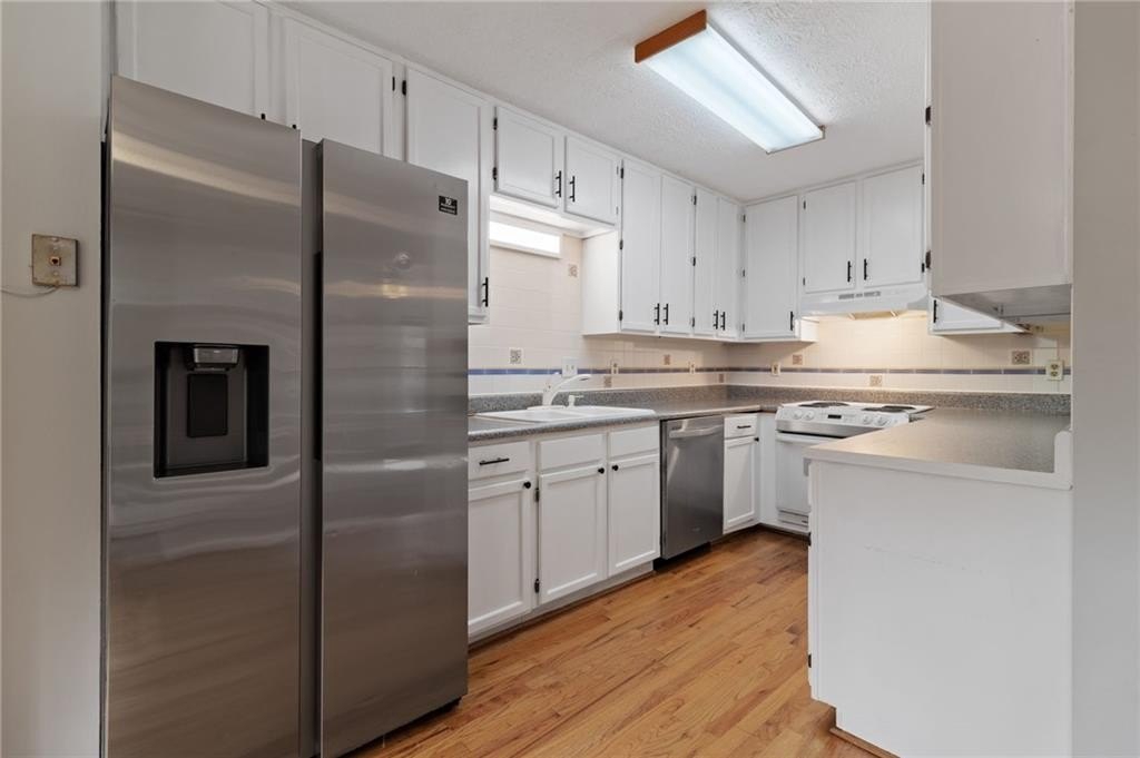 Spacious townhome/duplex tucked away in convenient, quiet and popular Carroll Manor in Sandy Springs. Rare 3 bedroom 2 1/2 bath, with a basement for great storage, workshop or flex space, AND a 2 car garage! 4 sided brick feels like a single family home, with ample square footage! Sunny family room with fireplace and gas logs, separate dining room , pretty powder bath, galley kitchen with white cabinets, cozy breakfast area, with access to 1 of 2 decks ! Upstairs primary suite with upgraded primary bath, bedroom opens to upper level deck. Secondary bedrooms are nice sized and share an upgraded hall bath. Easy working laundry area located upstairs too. Each home in Carroll Manor is a DUPLEX , only 2 homes in each building. Listing is for A side (left) only. Please do not disturb owner on B side. Recent upgrades include: ( but not limited to): Freshly painted throughout, new range hood, new upper deck, mini-split heat/cool in basement, new garbage disposal, newer kitchen refrigerator, HVAC 3 ton system, replaced furnace coil condenser, newer carpet and windows. All kitchen appliances and washer and dryer are included!!