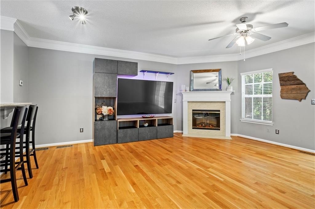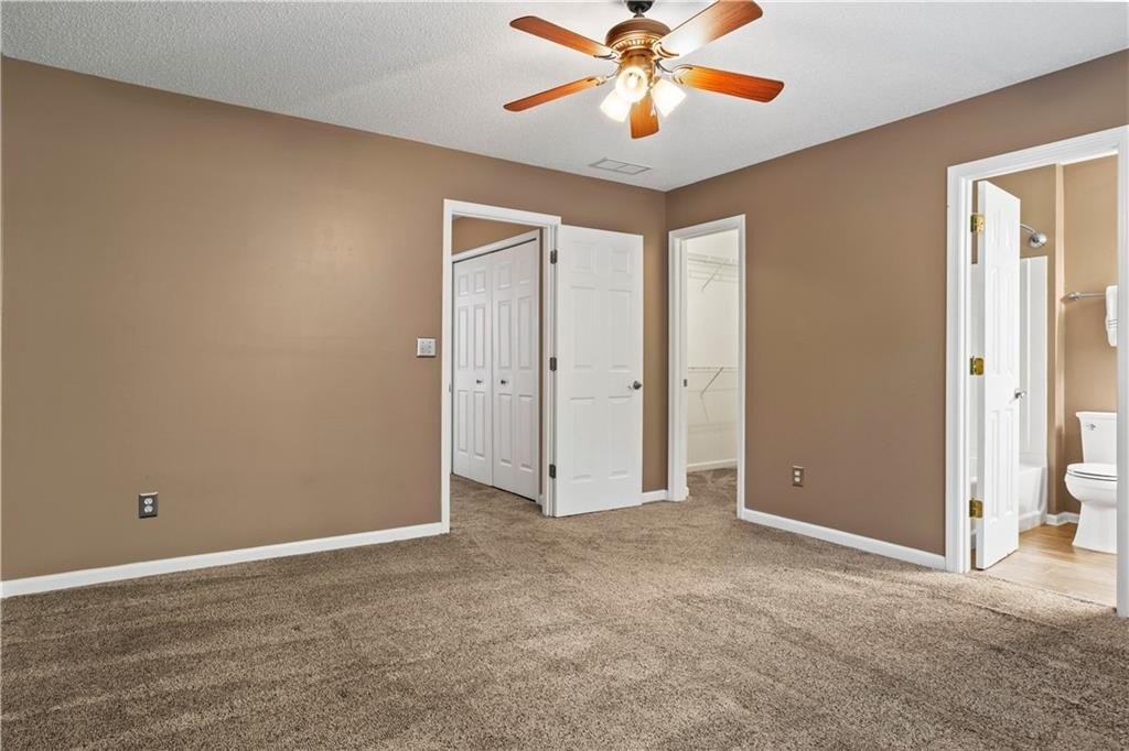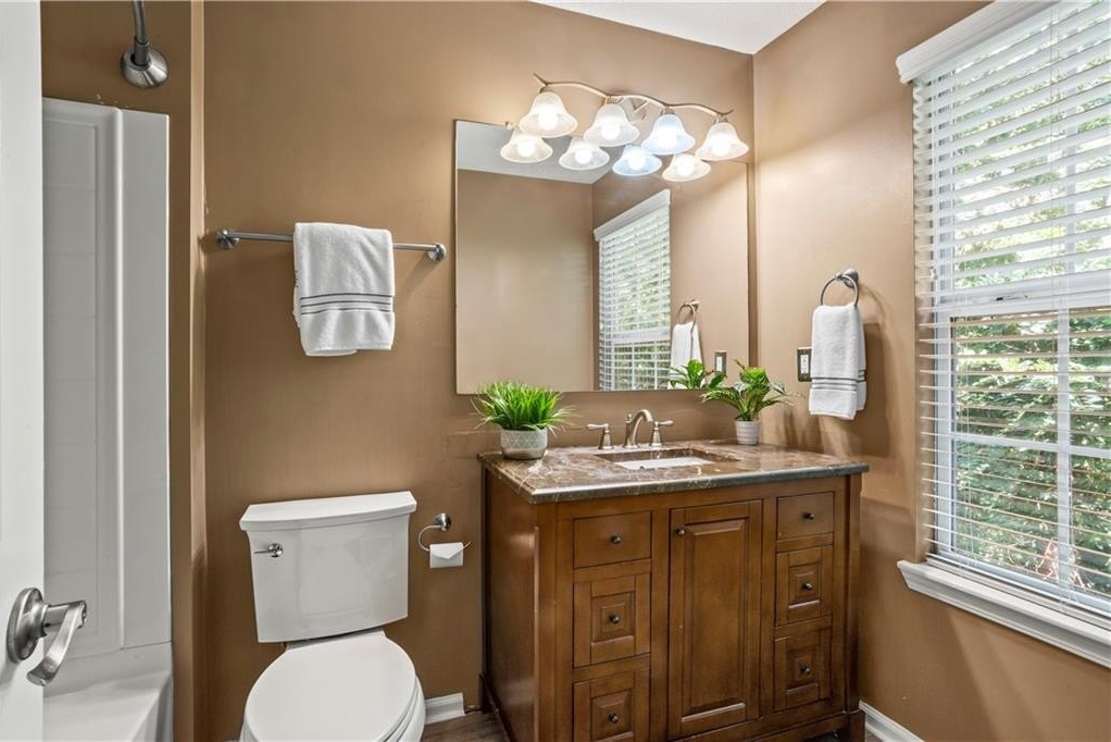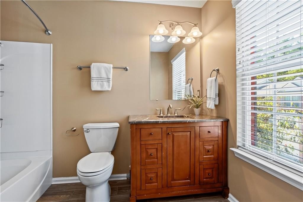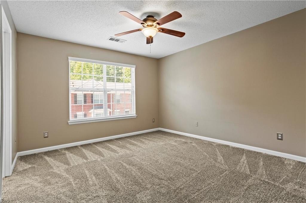Calling all influencers, podcasters or gamers - quiet lower-level bonus room is a perfect creative/studio space!!! This gated end-unit townhome features a convenient roommate-type floorplan with 2 primary bedrooms/baths upstairs, plus a bonus bedroom/office/gaming room on the lower level. Open main level with eat-in kitchen and large living room. TWO-car garage, two new HVAC systems (2022/2023), new hot water heater (2024), new roof and whole house surge protector. HOA fee Of $225/month covers, roof, exterior maintenance (paint, etc.), landscaping, pool, playground, and common-area maintenance. Walk to Starbucks and shopping; enjoy the community pool; enjoy secure gated access. VERY clean; move in and relax! Commuters...enjoy QUICK access to both I-75 and I-575; also very close to KSU.
