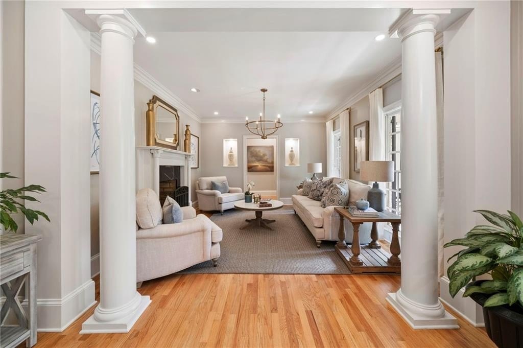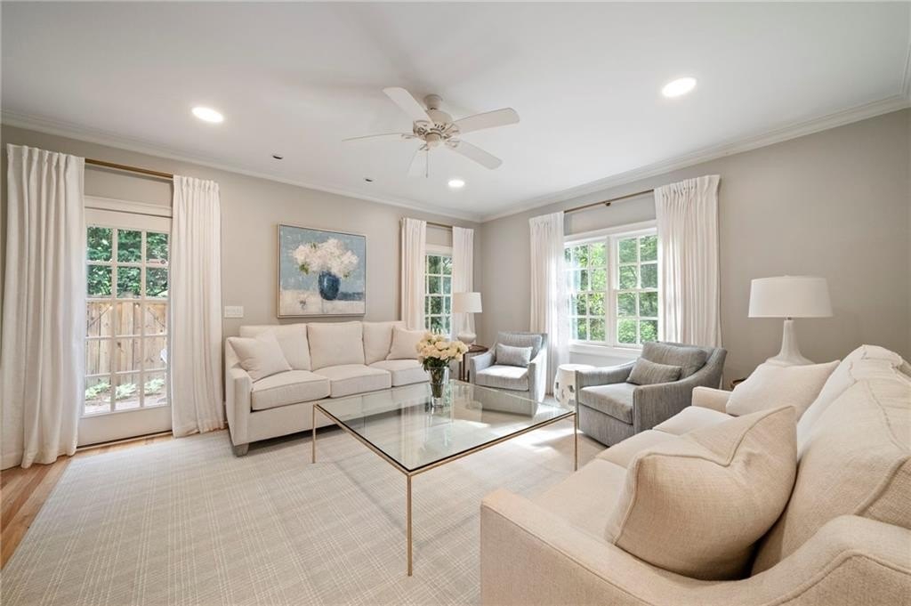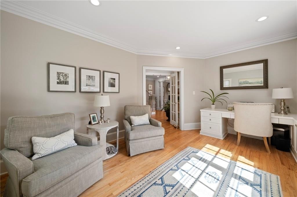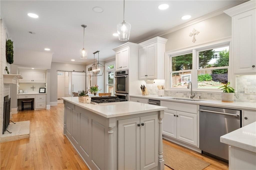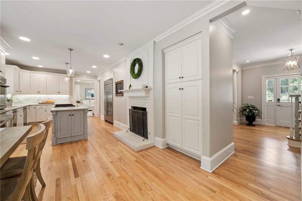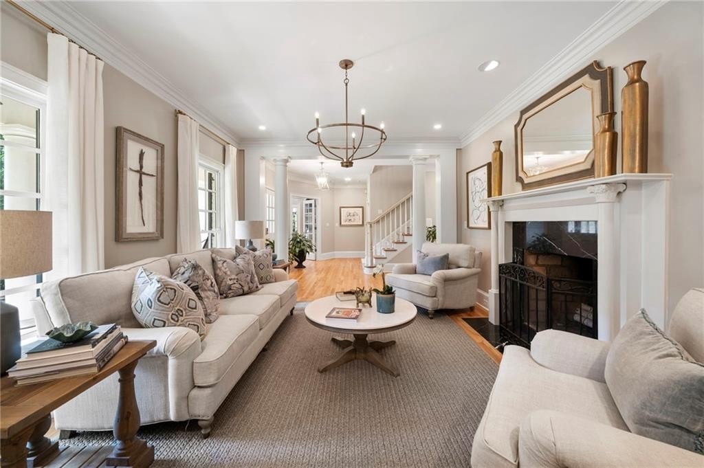 Beautifully renovated North Buckhead home with classic white brick exterior and timeless traditional style. Light-filled interiors feature high ceilings, hardwood floors, and an updated kitchen with marble island, Sub-Zero fridge, stainless appliances, and butler’s pantry. Main level includes a guest suite, private office, and two fireplaces.Upstairs boasts an expansive owner’s suite with new marble bath, large shower, double vanities, and walk-in closet. Spacious secondary bedrooms all with walk-ins, plus laundry room up. Huge flex space perfect for gym or hangout area. Meticulously maintained, new roof, updated systems. Unbeatable location near top schools, parks, and shopping—award-winning Sarah Smith Elementary.