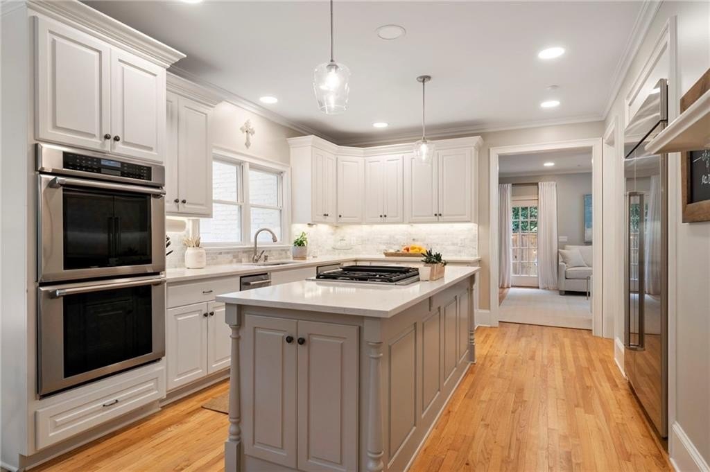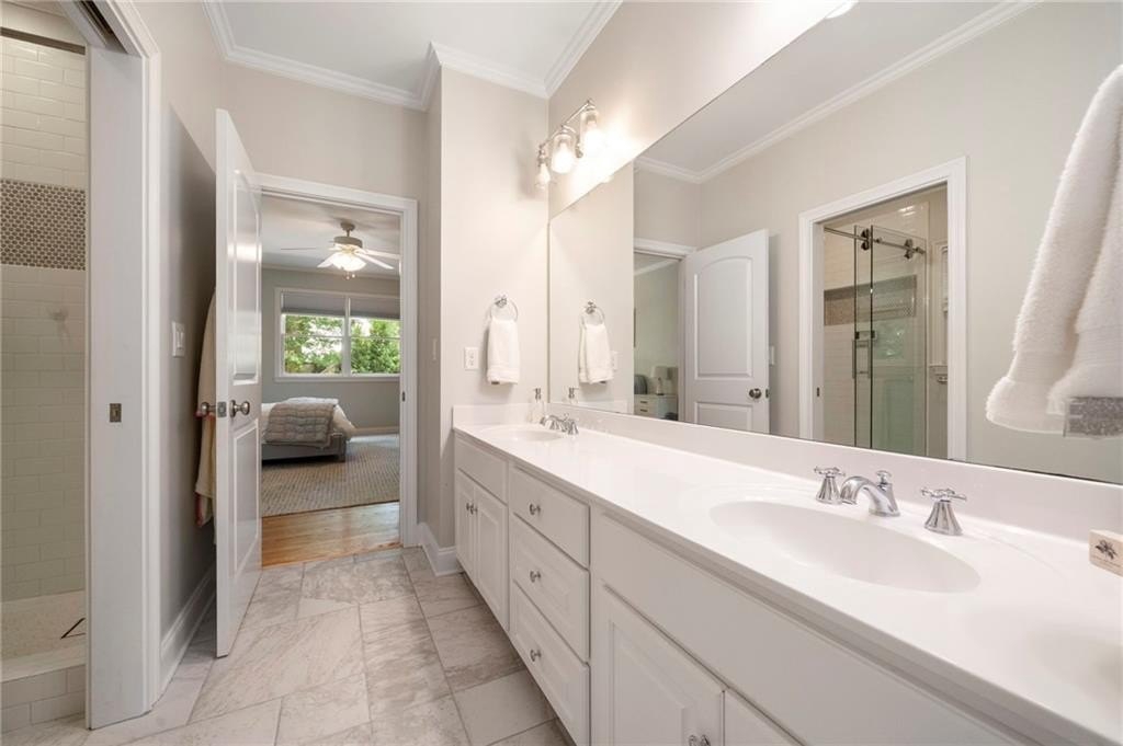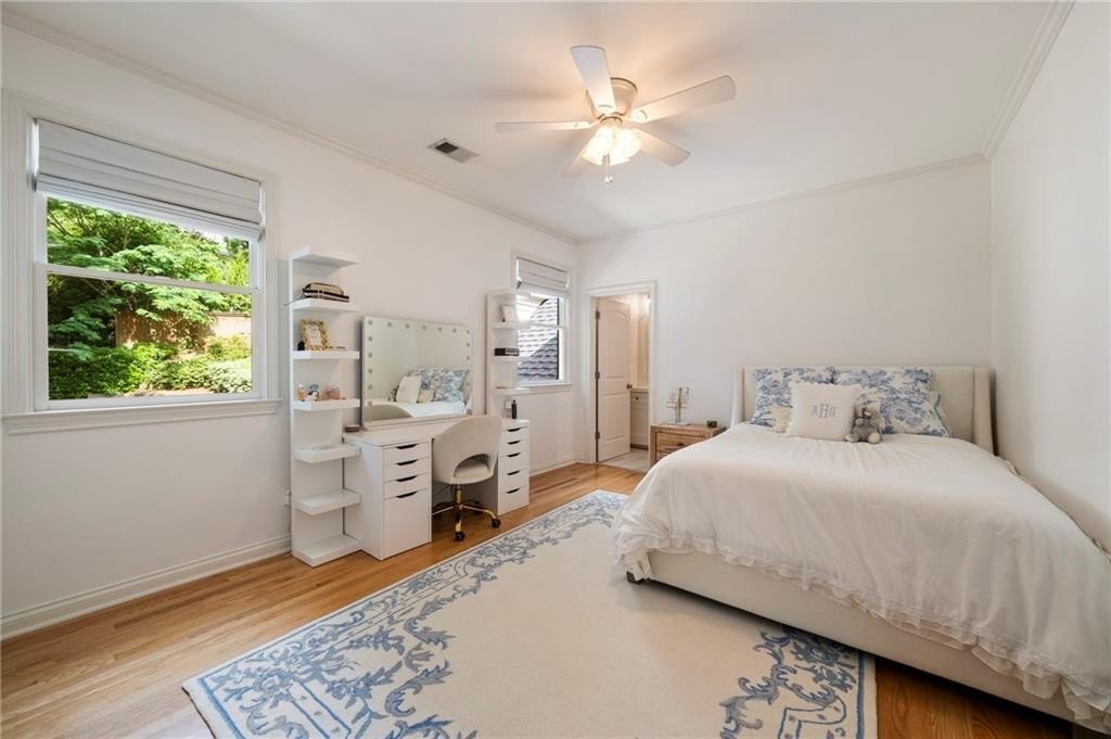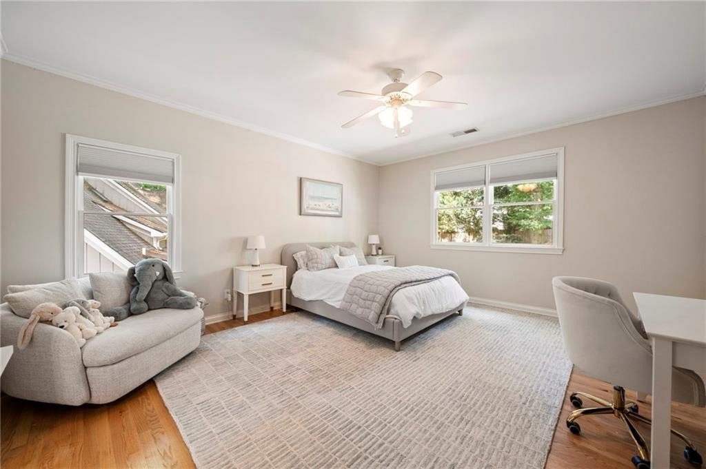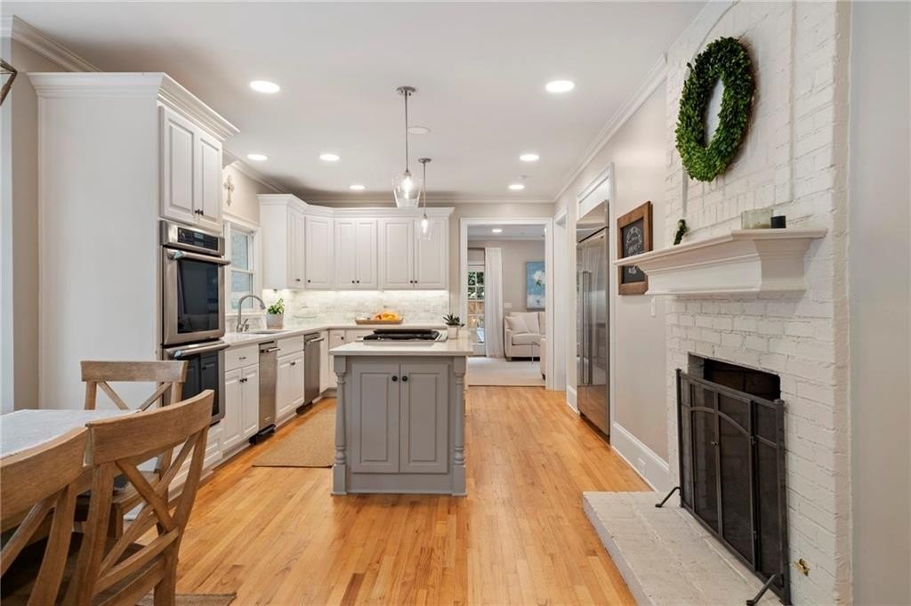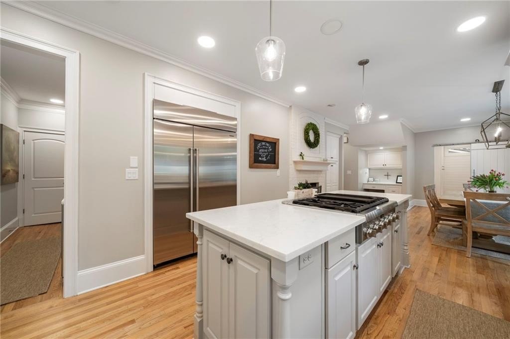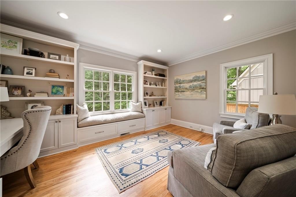 Beautifully renovated North Buckhead home with classic white brick exterior and timeless traditional style. Light-filled interiors feature high ceilings, hardwood floors, and an updated kitchen with marble island, Sub-Zero fridge, stainless appliances, and butler’s pantry. Main level includes a guest suite, private office, and two fireplaces.Upstairs boasts an expansive owner’s suite with new marble bath, large shower, double vanities, and walk-in closet. Spacious secondary bedrooms all with walk-ins, plus laundry room up. Huge flex space perfect for gym or hangout area. Meticulously maintained, new roof, updated systems. Unbeatable location near top schools, parks, and shopping—award-winning Sarah Smith Elementary.