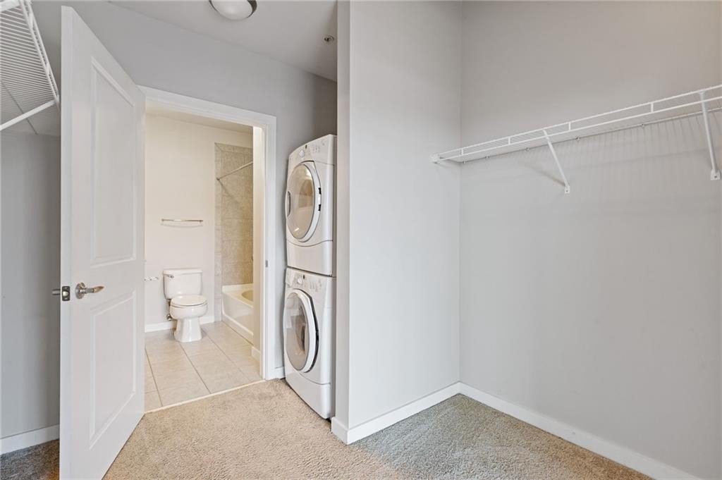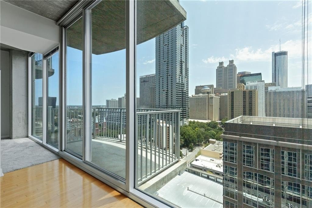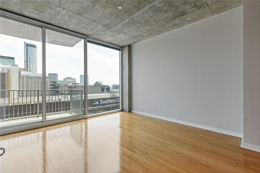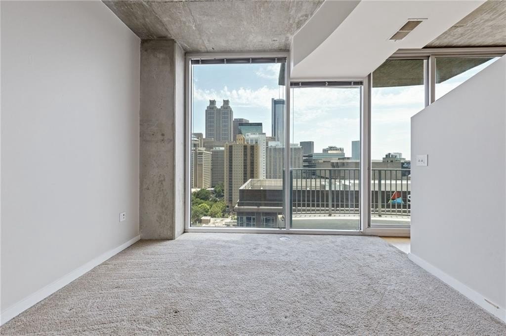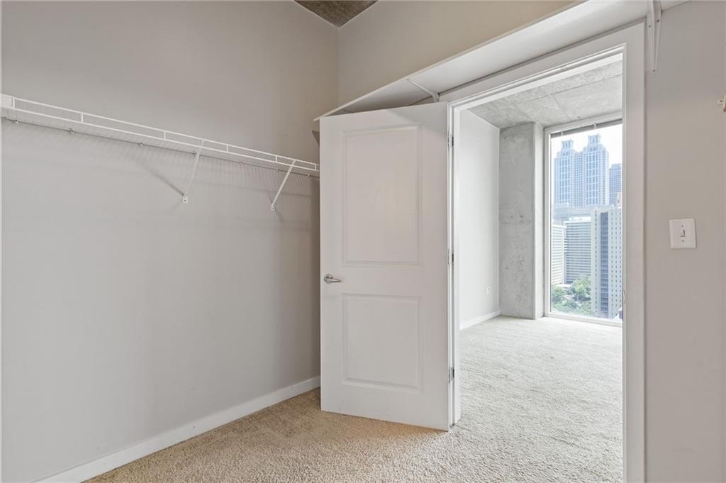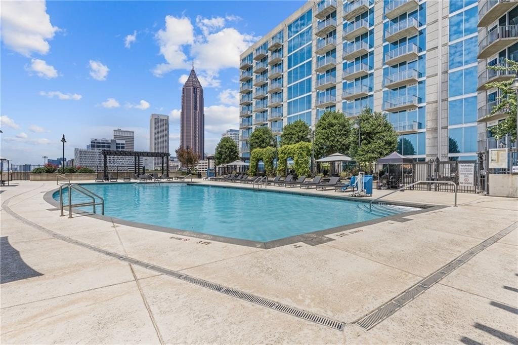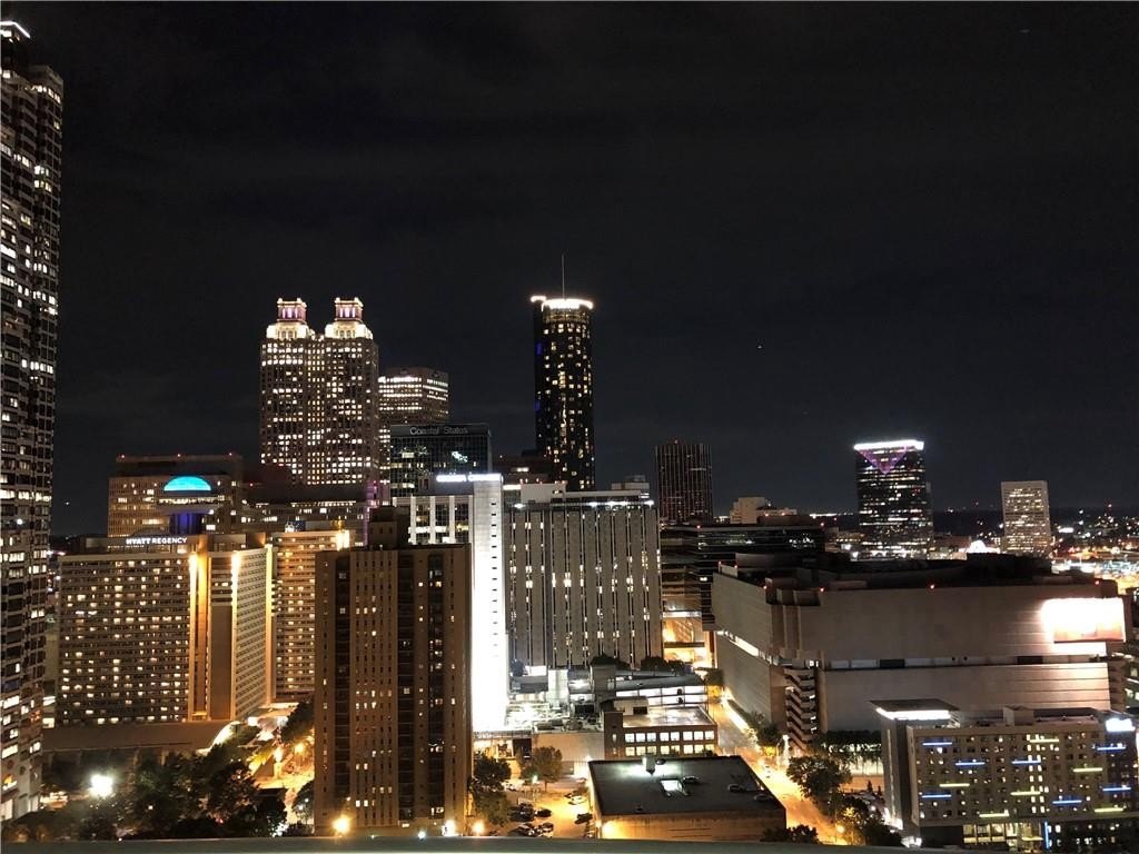 Most Sought After One Bedroom Floor Plan in the Entire Building! Ceiling to Floor Windows in BOTH Livingroom/Kitchen area AND Bedroom with VIEWS Galore (South, SE/SW Skyline VIEWS)! Home has HardWood Flooring (carpet in Bedroom & Tile in Bathroom), Stainless Steel Appliances (Frig/Stove/Dishwasher/Microwave), Approx 10' Ceiling Height, Stackable Front Load Washer/Dryer, Granite Countertops in Kitchen & Bath, Huge spacious Walk-Thru Master Closet (largest closet in all of the One Bdrm Floor Plans), and One Assigned Covered Parking Space in the Garage. Tons of Amenities (24/7 Concierge, Outdoor Pool, Fitness, Clubroom Area, Conference Room, Business Center, Fenced In Doggie Area, & MORE! Walk to Dinner/Shopping/Mercedes Benz Stadium/Aquarium/MARTA/CNN/Centennial Park/Ga Tech/Ga State/Piedmont Park & Beltline PLUS close to Publix/Whole Foods/Trader Joes!!!