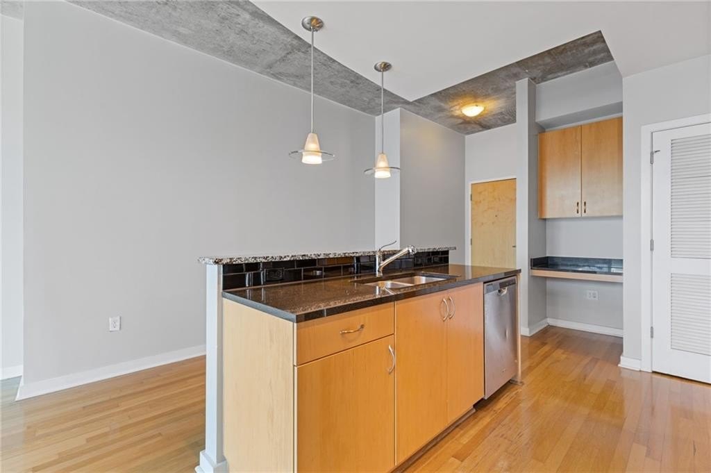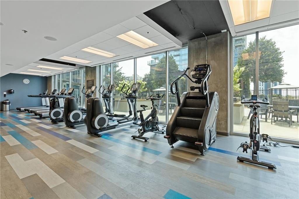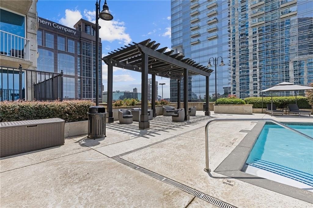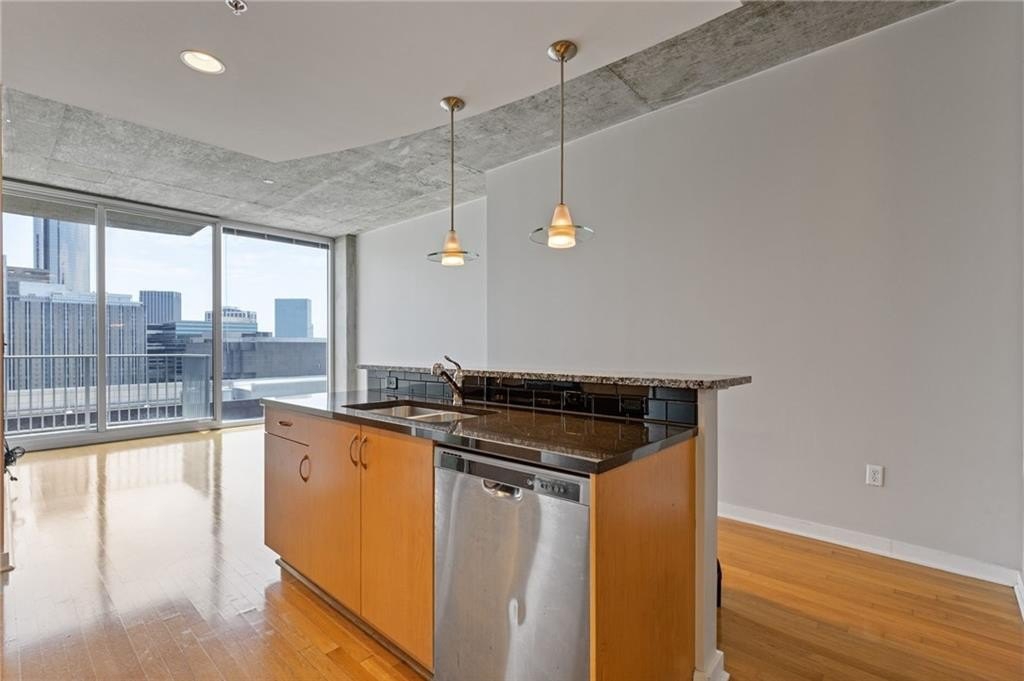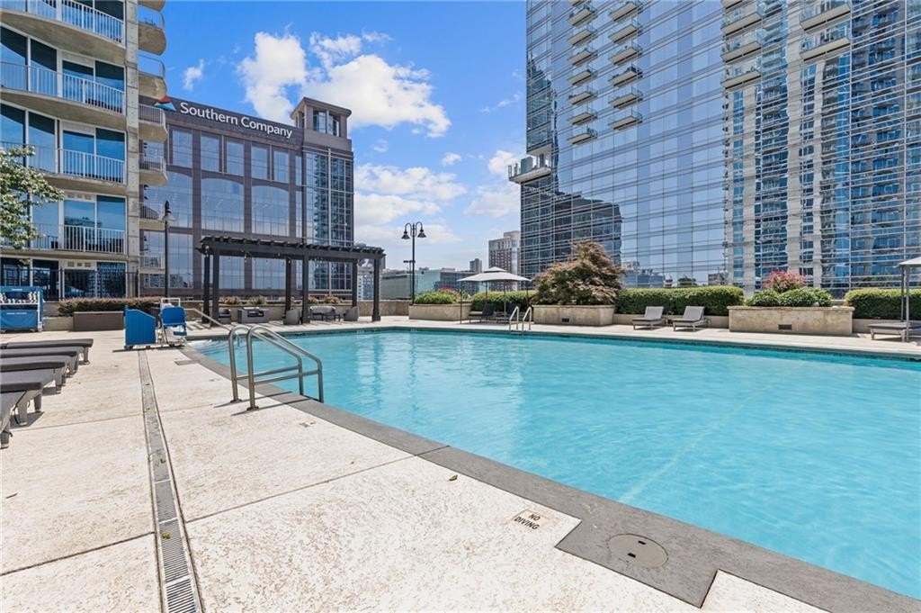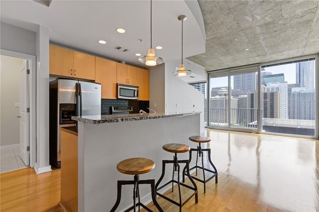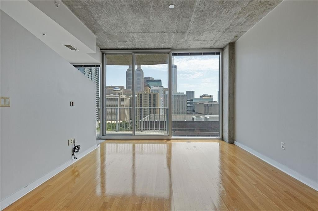 Most Sought After One Bedroom Floor Plan in the Entire Building! Ceiling to Floor Windows in BOTH Livingroom/Kitchen area AND Bedroom with VIEWS Galore (South, SE/SW Skyline VIEWS)! Home has HardWood Flooring (carpet in Bedroom & Tile in Bathroom), Stainless Steel Appliances (Frig/Stove/Dishwasher/Microwave), Approx 10' Ceiling Height, Stackable Front Load Washer/Dryer, Granite Countertops in Kitchen & Bath, Huge spacious Walk-Thru Master Closet (largest closet in all of the One Bdrm Floor Plans), and One Assigned Covered Parking Space in the Garage. Tons of Amenities (24/7 Concierge, Outdoor Pool, Fitness, Clubroom Area, Conference Room, Business Center, Fenced In Doggie Area, & MORE! Walk to Dinner/Shopping/Mercedes Benz Stadium/Aquarium/MARTA/CNN/Centennial Park/Ga Tech/Ga State/Piedmont Park & Beltline PLUS close to Publix/Whole Foods/Trader Joes!!!