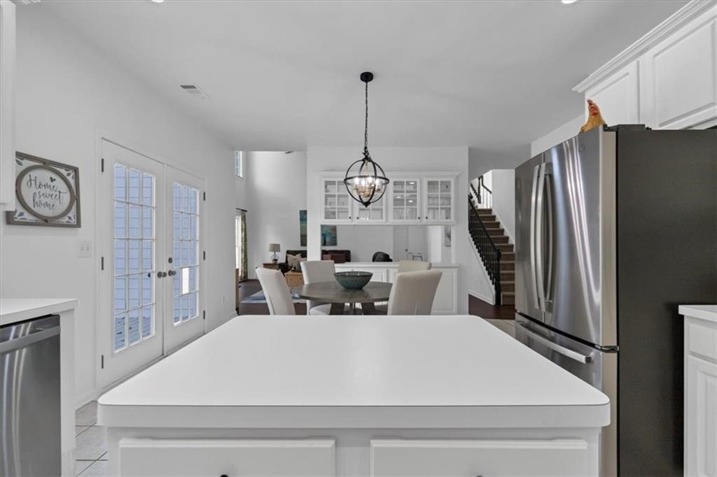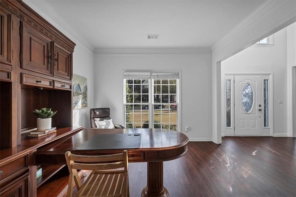 "live, work, play" city with shops, chef-driven restaurants, and the Town Green which hosts events, festivals, parks and the Alpharetta Farmers Market! Priced to sell and sold "as-is" this home is the best value on the market! Bring your designer touches and make this your forever home in the most sought after location in metro Atlanta. This home has so much to offer with 5 bedrooms/3 full baths, bedroom on the main level with a full bath, and a backyard that is unbeatable! As you enter this amazing home, you will feel welcomed by the two-story foyer with open views to the fireside family room. An office and formal dining room flank the open foyer. The chef's kitchen is open to the cozy breakfast area and offers a huge island with granite counters, white cabinets and stainless appliances. The laundry room is located conveniently off the kitchen. Upstairs, retreat to the master suite that offers an oversized sitting area with built in bookshelves and a spa like bath with dual vanities, jacuzzi tub, separate shower and walk in closet. The second level boasts three additional bedrooms and a shared bath along with a gorgeous catwalk overlooking the family room. Guest bathrooms have been newly updated. Freshly painted inside and out with neutral colors and all new lighting and hardware package throughout. A two car garage and huge fenced in back yard finish off this amazing home! Great school district and sought after subdivision. Don't delay! This is the one to see today! Buyer's ask me how you can save 25% on your closing fees and get a FREE appraisal! Please do not let the cat out!