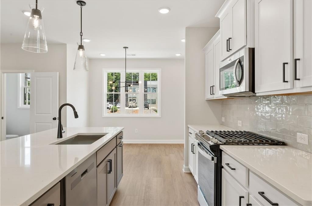 Traton Homes welcomes you to East Park Village in Kennesaw, GA. OUR KAUFMAN B IS READY December. Traton Homes is also offering $2500 anyway you want it along with our preferred lenders who are offering up to $10,000 towards closing costs. The Kaufman features a rear entry 2 car garage with a ground floor bedroom/office and full bath. You will enjoy hardwood stairs from the terrace level that lead up to your main level. Here you will find a spacious open concept kitchen with shaker cabinets, quartz tops, gas cooking and an island that can seat 4 comfortably. The family room opens to a 10'x18' covered deck perfect for entertaining. Hardwood stairs lead you to the upper level where you will find the king-sized Owner’s suite with a large vanity and dual sinks, large shower with bench and spacious custom closet. The secondary bedroom on this floor has a private bath and is separated from the primary suite offering privacy. The laundry is located between these bedrooms for your convenience. East Park Village has a great amenity package including Cabana with fireplace, pool and Dog Park. We are within walking distance of several shops and restaurants and just 1.2 miles from trendy Downtown Kennesaw. East Park Village was named Best Neighborhood in Cobb County for 2024. Come See Why! We are open 7 days a week. All photos are representative, decorated photos are of the model. All applicants must prequalify with our lender regardless of who you choose for your loan. All incentives are tied to preferred lenders only.