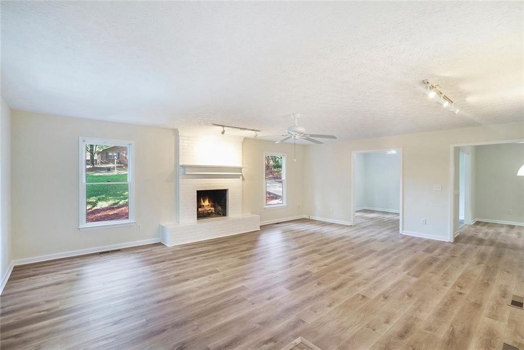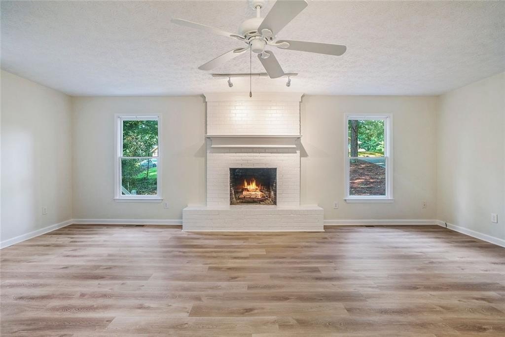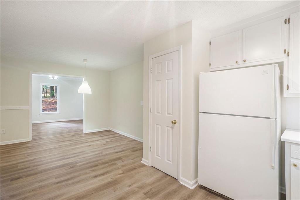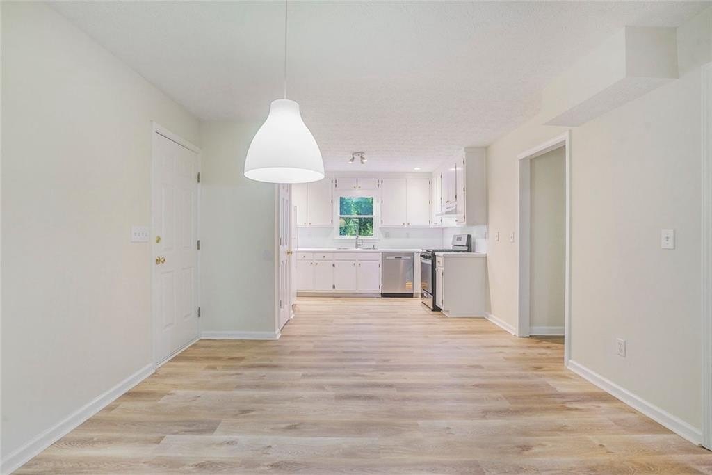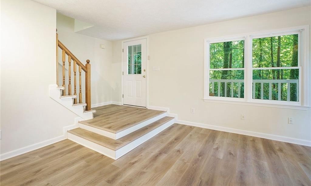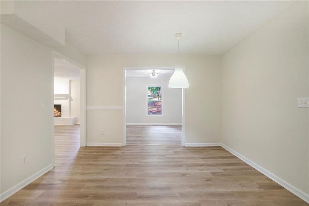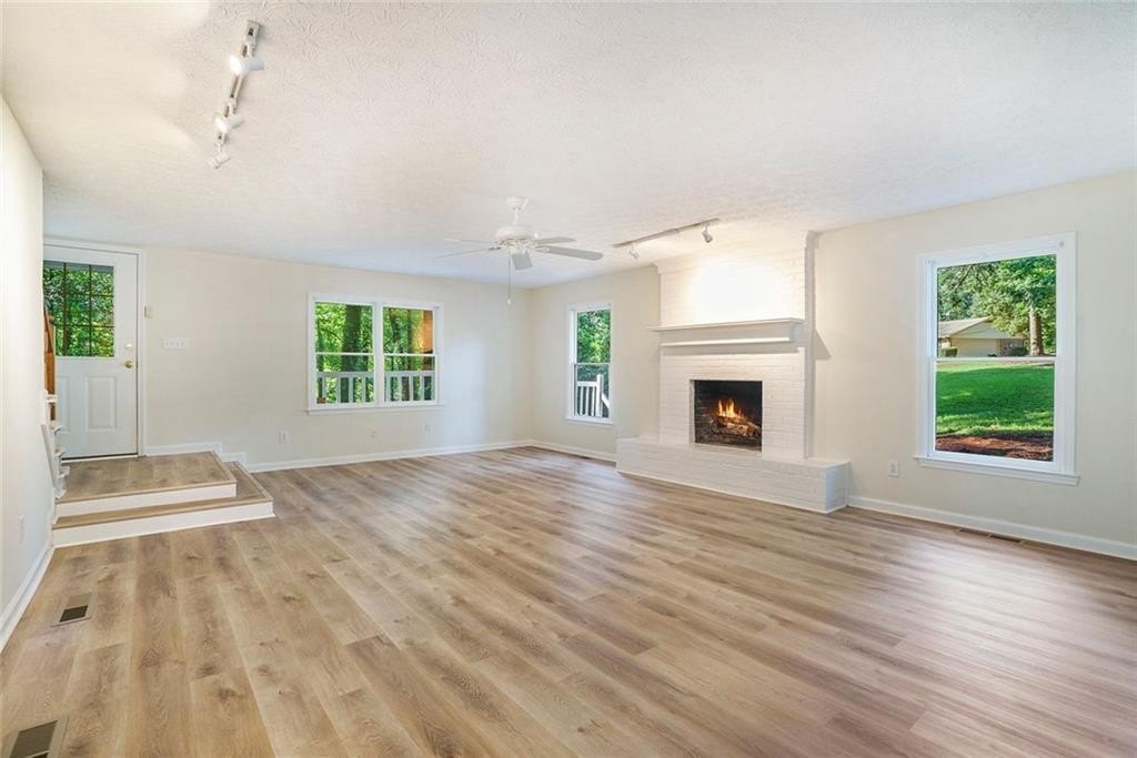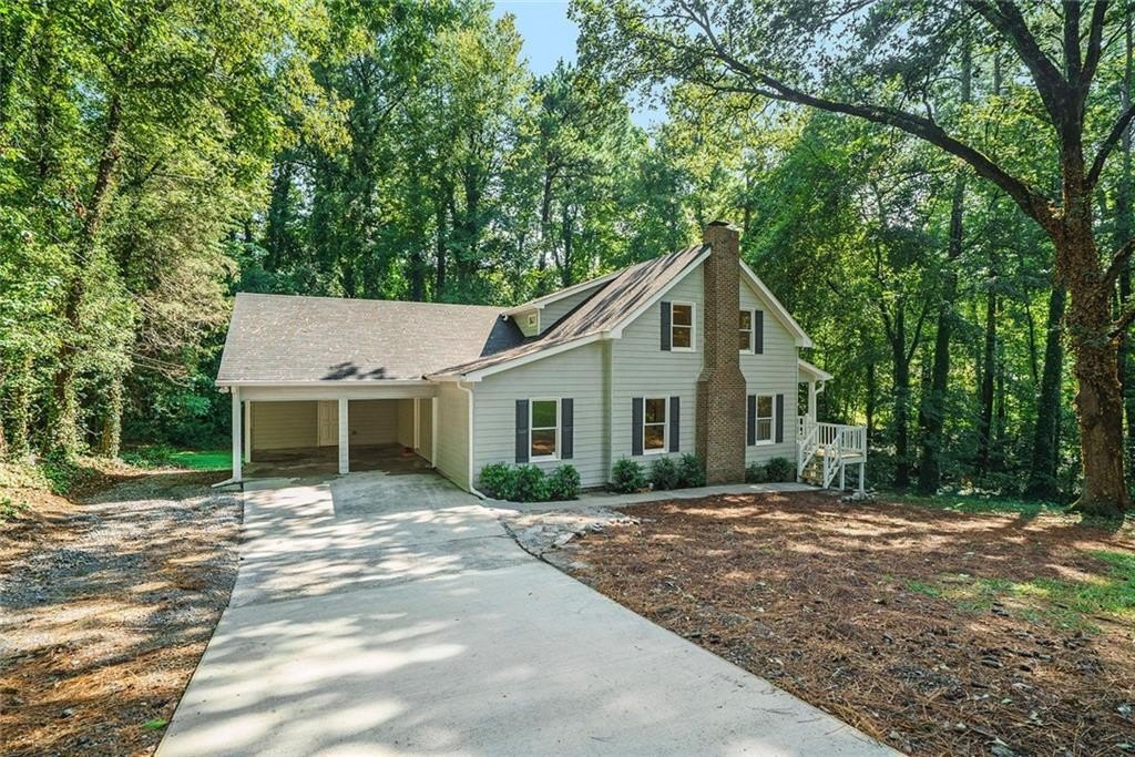 So much has been done to benefit the new folks buying this home. The exterior has been freshly painted in a beautiful modern gray color. The interior walls, ceilings, and trim are all fresh painted. Wall to wall new flooring has been installed, with attractive luxury vinyl plank in the downstairs living areas, with brand new carpeting in the bedrooms. The owner recently replaced the roof and the heating and air conditioning units. Even the septic tank is freshly serviced and inspected. The crawl space is freshly lined with thick plastic to control moisture and keep things clean and tidy. This home features a relaxing porch off the side, overlooking a wooded area which appears to be an unbuildable lot. The primary bedroom and dual vanity bath are on the main level. Two additional oversized bedrooms are upstairs. The separate dining room sports a new light fixture. The family room is very large and includes a wood-burned fireplace. It will be a wonderful family home in a quiet, established, neighborhood in Snellville close to restaurants and shopping.