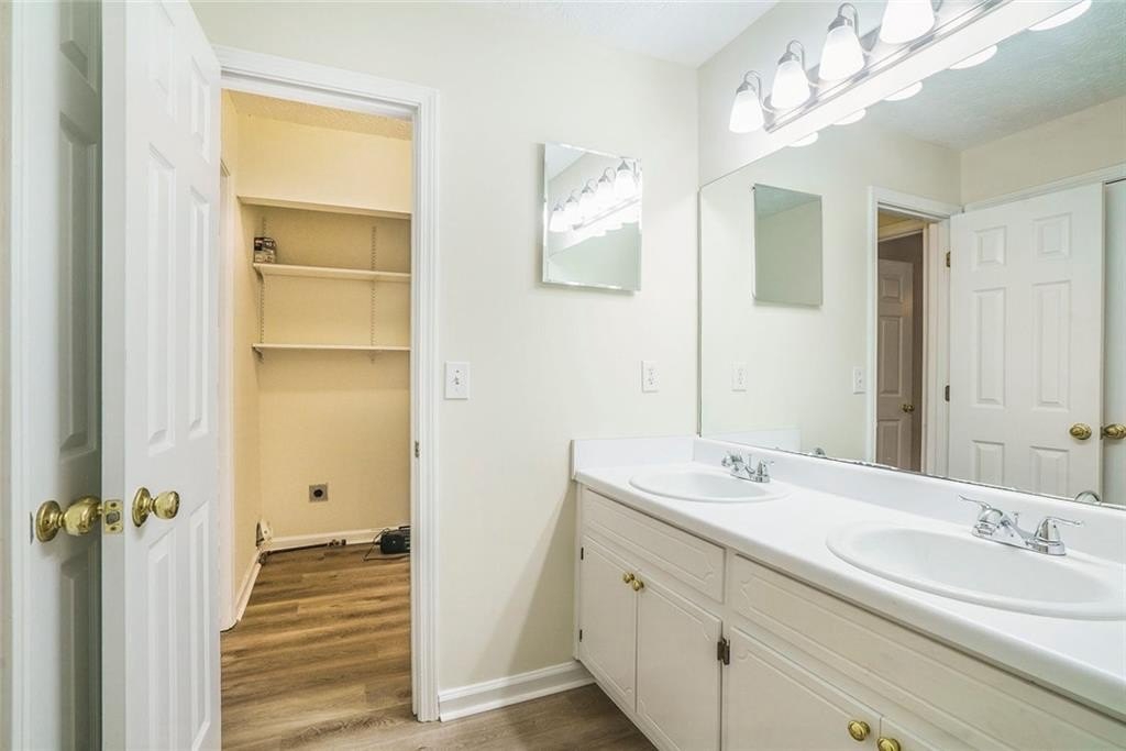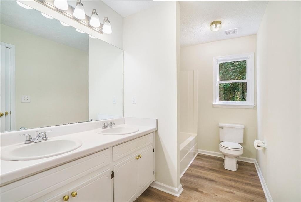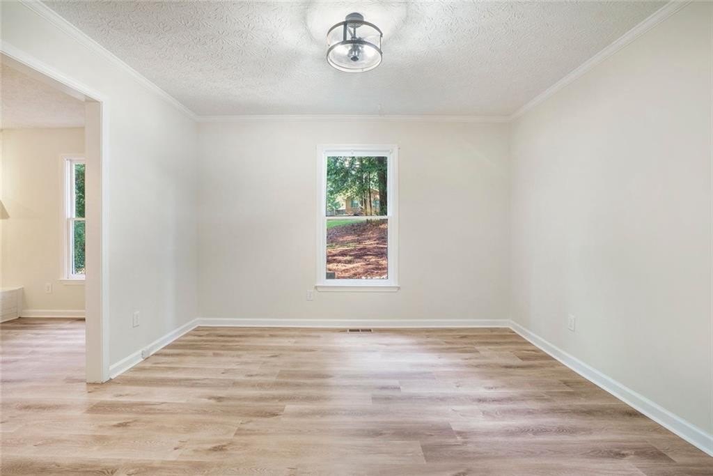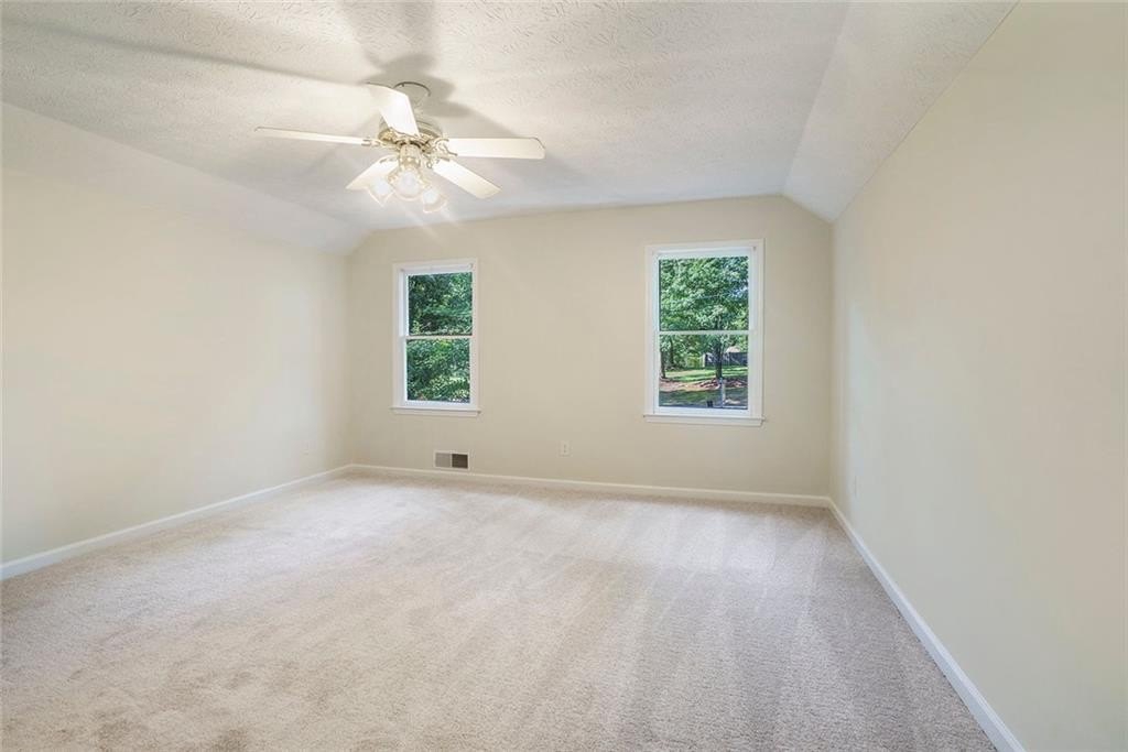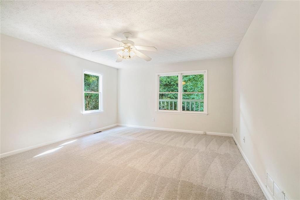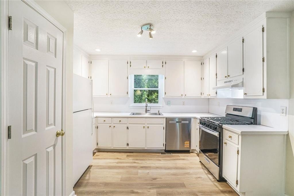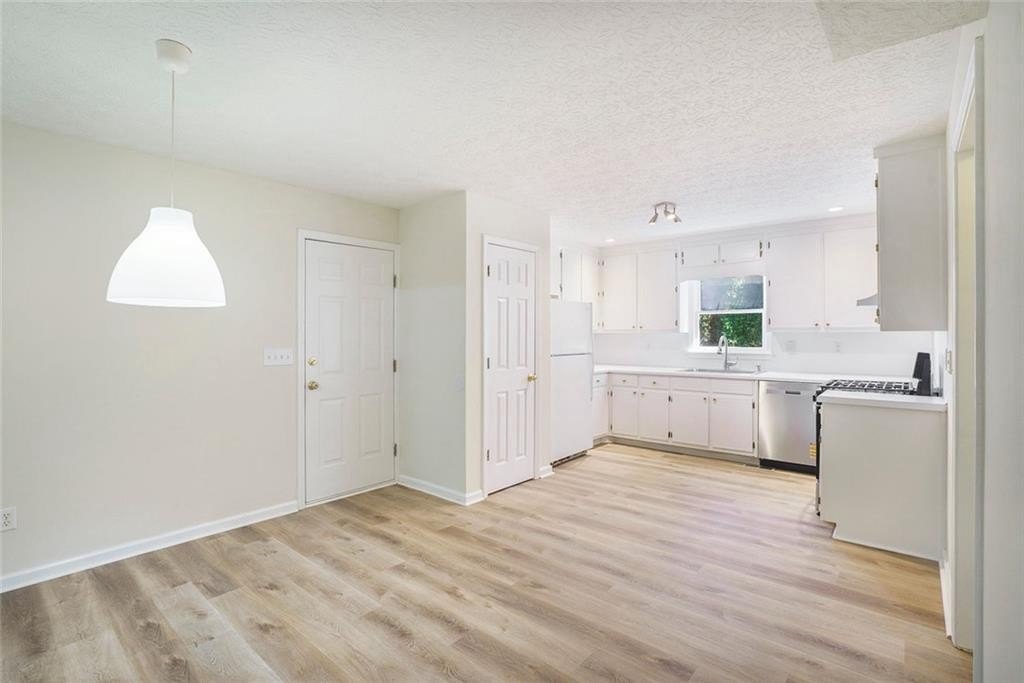 So much has been done to benefit the new folks buying this home. The exterior has been freshly painted in a beautiful modern gray color. The interior walls, ceilings, and trim are all fresh painted. Wall to wall new flooring has been installed, with attractive luxury vinyl plank in the downstairs living areas, with brand new carpeting in the bedrooms. The owner recently replaced the roof and the heating and air conditioning units. Even the septic tank is freshly serviced and inspected. The crawl space is freshly lined with thick plastic to control moisture and keep things clean and tidy. This home features a relaxing porch off the side, overlooking a wooded area which appears to be an unbuildable lot. The primary bedroom and dual vanity bath are on the main level. Two additional oversized bedrooms are upstairs. The separate dining room sports a new light fixture. The family room is very large and includes a wood-burned fireplace. It will be a wonderful family home in a quiet, established, neighborhood in Snellville close to restaurants and shopping.