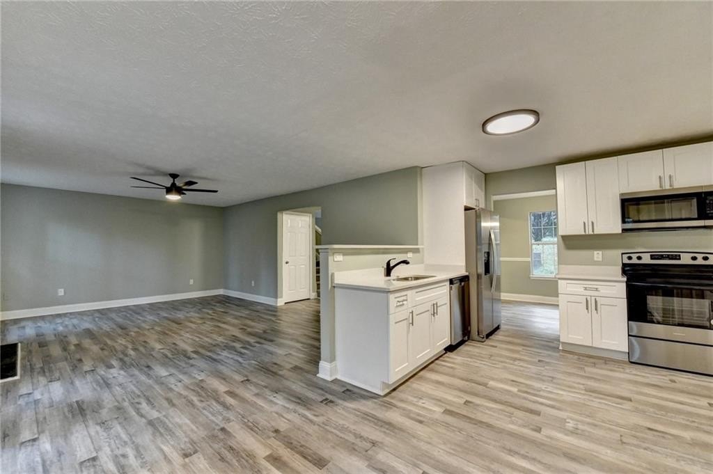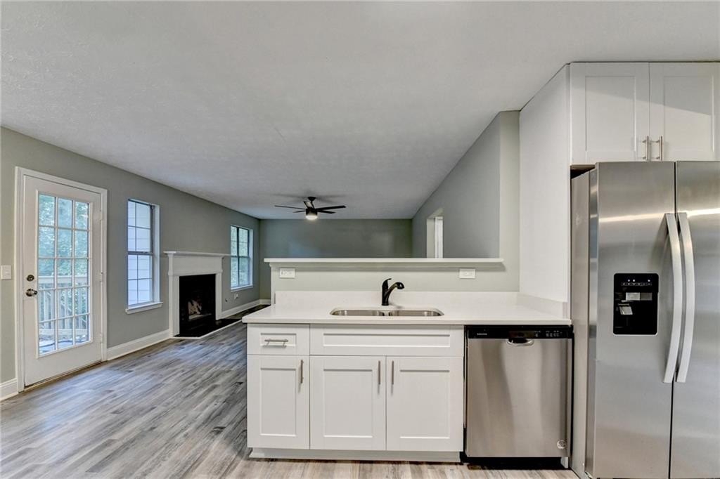 Welcome to your beautifully updated home in Lithonia! This spacious 3-bedroom, 2.5 bath residence offers the perfect blend of modern comfort and timeless charm. Step inside to an open-concept living area with brand-new flooring, neutral tones, and large windows that fill the space with natural light. The cozy family room features a classic fireplace, creating a warm and inviting atmosphere, perfect for relaxing or entertaining. The stunning kitchen boasts sleek white cabinetry, quartz countertops, stainless steel appliances, and a functional layout that will delight any home chef. Upstairs, you’ll find three comfortable bedrooms, including a private owner’s suite with an updated bathroom. The additional bathrooms are tastefully designed with modern finishes. Outside, the property offers a quiet setting with a spacious yard, ideal for gatherings, gardening, or simply enjoying the outdoors. Conveniently located near shopping, dining, schools, and major highways, this home combines style, comfort, and accessibility. Don’t miss the opportunity to make this move-in-ready home yours!