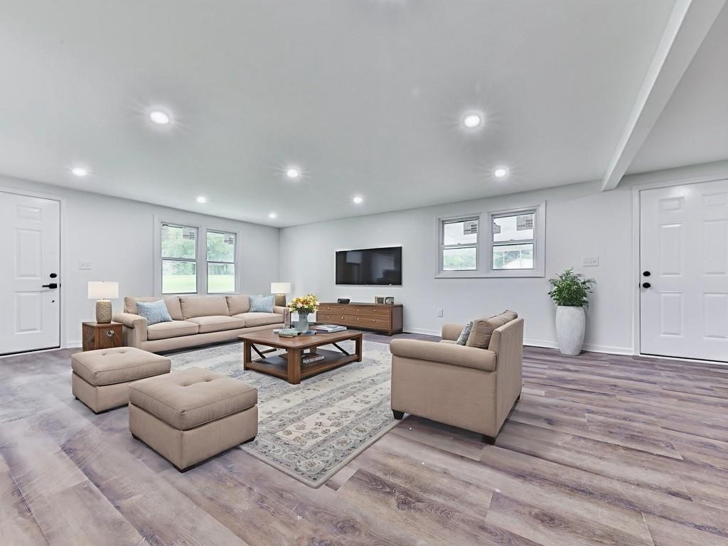 The exterior has been refreshed with crisp white paint and a sleek metal roof, creating stunning curb appeal. Step inside to discover a completely gutted and reimagined interior with an open-concept floor plan, brand-new kitchen with quartz countertops and custom cabinetry, and new flooring throughout. Both bathrooms have been beautifully gutted and updated, offering a fresh and modern feel in every corner of the home.