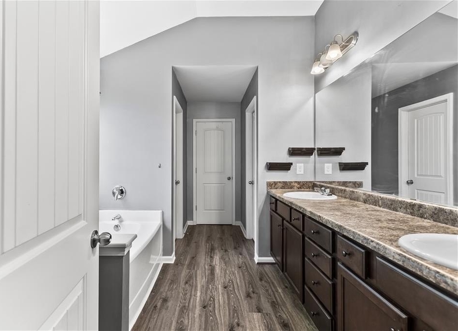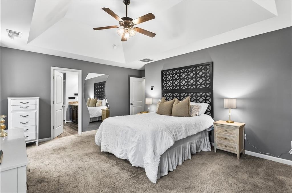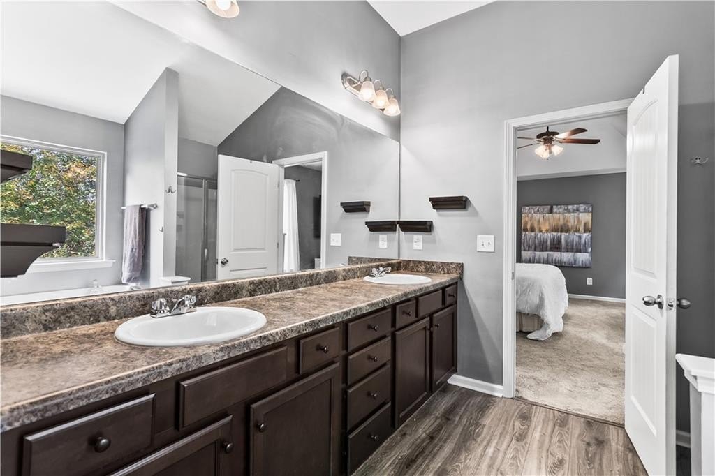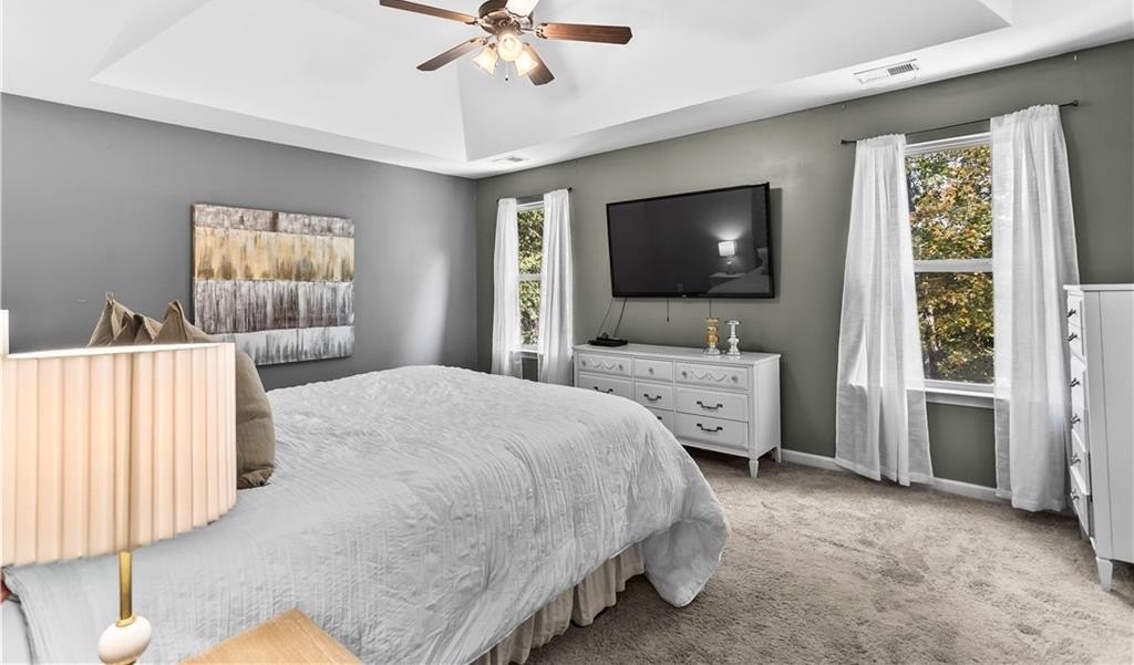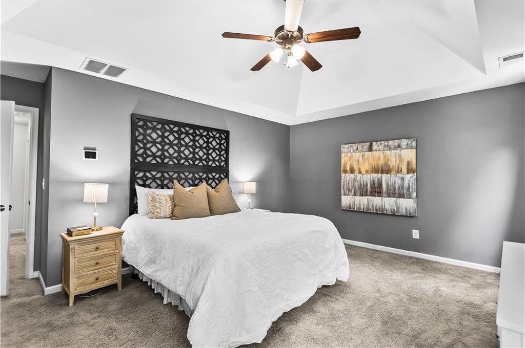 This beautiful 3-bedroom, 2.5-bath home features an open floor plan and an inviting backyard complete with a built-in grill and firepit, perfect for entertaining or relaxing outdoors. An ideal location with easy access to grocery stores, pharmacies, entertainment, and everyday conveniences. The neighborhood is peaceful, with quiet neighbors and exciting growth all around. It’s a wonderful area of metro Atlanta to invest in, offering great dining and activities just minutes away. The private backyard gets plenty of afternoon shade, making it comfortable to enjoy outdoor evenings. Inside, the second-floor, retreat to your primary suite, light-filled and roomy, with space to relax after a long day. Enjoy the spa-like bath with a soaking tub, separate shower, and double vanities, plus a generous walk-in closet for all your favorites.