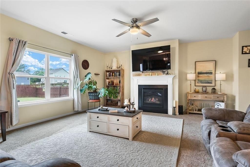 You will love this home located in the beautifully designed, Fours Seasons Subdivision for so many reasons from the charming rocking chair front porch, to the great interior floor plan to the large, flat, fenced backyard! There is stepless entry into the home that opens to a foyer and a sunny dining room. The kitchen has lots of counter space and cabinets for storage, a walk-in pantry and a large island. The kitchen opens to the spacious family room with a cozy fireplace. Upstairs the owner’s suite has a large sitting area. There are three other secondary bedrooms as well plus a loft area that could be used as an office or playroom. The laundry room is conveniently located on the upper level. And then there are the fabulous amenities which include a pool, exercise facility, and playground. Close to shopping and restaurants and the great Museums in Cartersville, Savoy Automobile Museum, Tellus Science Museum, and Booth Western Art Museum, among others. Convenient to I75, Hwy 41 and Hwy 411. Schools: White Elementary, Cass Middle and Cass High.
