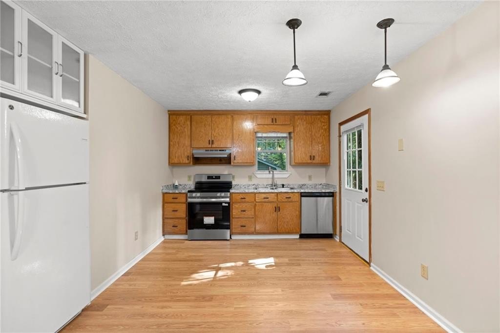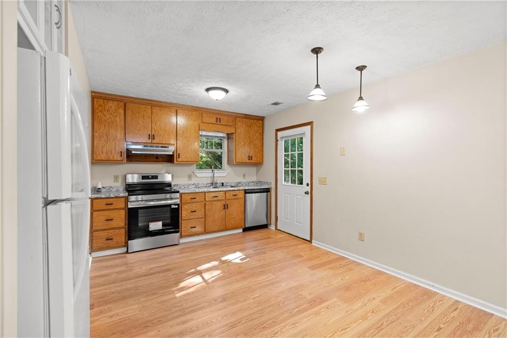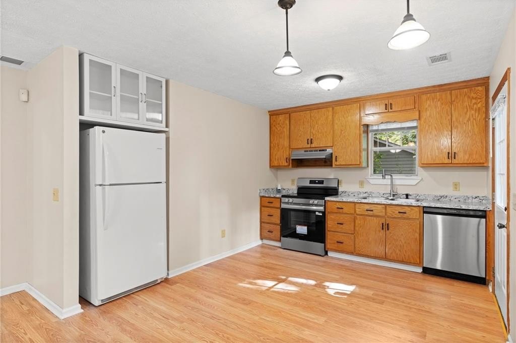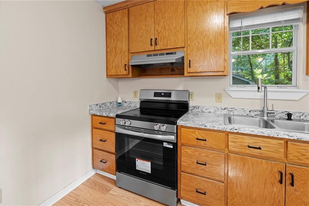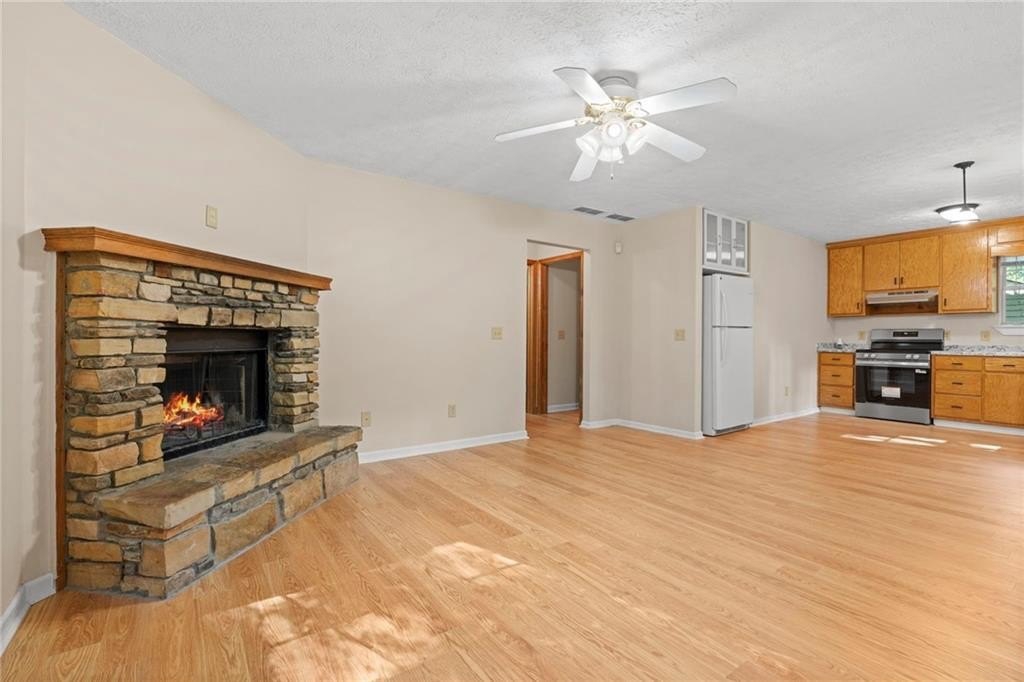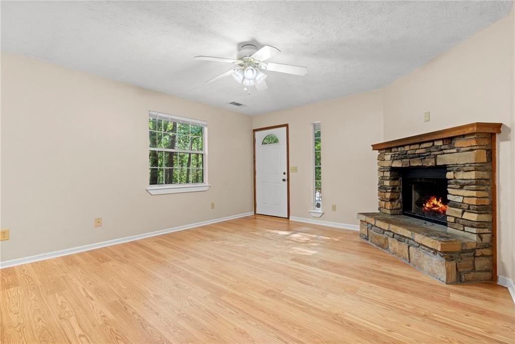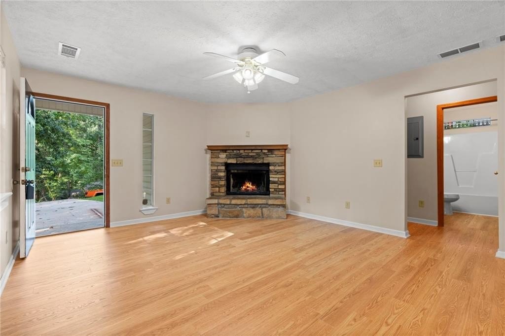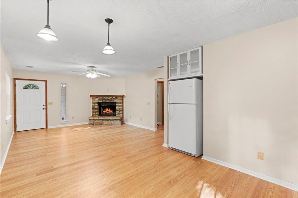 Discover the perfect little place close to the lake! This charming 2-bedroom, 2-bath home is move-in ready and full of recent upgrades, nestled on a large wooded corner lot just minutes from Lake Lanier. Whether you're looking for a primary residence, a weekend retreat, or an investment opportunity, this property offers comfort and convenience in one affordable package. Step inside to find a freshly painted interior and an open, welcoming layout. The brand new luxury vinyl plank (LVP) flooring runs throughout the home, offering a clean, modern look that's also durable and easy to maintain. The living room features a wood-burning fireplace and the kitchen has been updated with new appliances and new countertops, giving the space a fresh, functional feel. Both bedrooms are well-sized and one features an ensuite bathroom. Peaceful, wooded lot, offers privacy and a small space to garden. The location is a true highlight—just minutes to Lake Lanier, with easy access to boat ramps, parks, and water activities. You'll also appreciate the quick commute via GA-400, and the close proximity to the Cumming City Center, which offers a vibrant mix of shopping, restaurants, and entertainment. From local dining spots to boutique stores and a seasonal amphitheatre with free live music from spring to fall, there's always something to enjoy nearby. This home combines updated interiors, a spacious outdoor setting, and an unbeatable location. Whether you're seeking a low-maintenance lifestyle, a weekend escape, or a cozy place to call home, this one has it all. Bring your boat, bring your toys, and make this Lake Lanier gem yours today!
