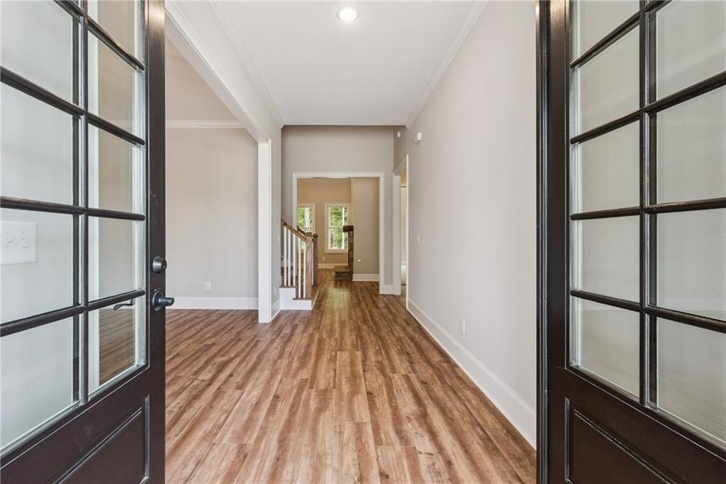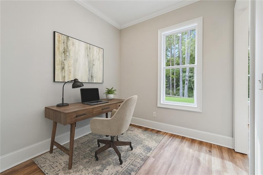 Luxury estate in the heart of West Cobb at Ward Mills Farm just minutes from downtown Marietta, Kennesaw Mountain, shops, stores and restaurants. Chef’s kitchen boasts a 5-burner gas cooktop, double ovens, custom cabinetry, and a butler’s pantry with rich butcher-block counters. Spacious great room impresses with custom built-ins, floating cedar shelves, and a designer fireplace. Additional highlights on the main level include a private office, a convenient laundry room, and detailed trim work throughout. Master bedroom on main offers luxury spa-like bath with dual vanity, soaking tub and shower room. You’ll find three spacious bedrooms and a versatile loft area that can serve as a game room, media space, or extra guest suite on upper level. 3-car garage provides plenty of room for vehicles, storage, or hobbies. Step outside to a covered back porch overlooking a serene wooded nature preserve—your personal retreat for relaxing or hosting gatherings. Schedule your showing today.