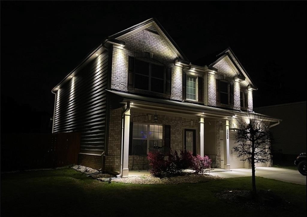 Enjoy the glow of newly installed exterior lighting on three sides of the home—perfect for showcasing the property’s charm and providing a beautiful evening ambiance.