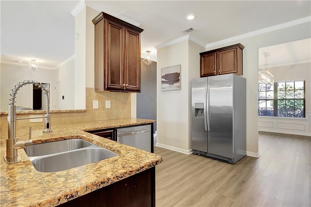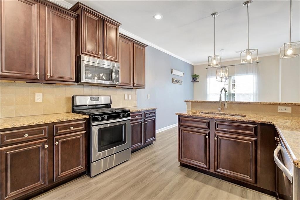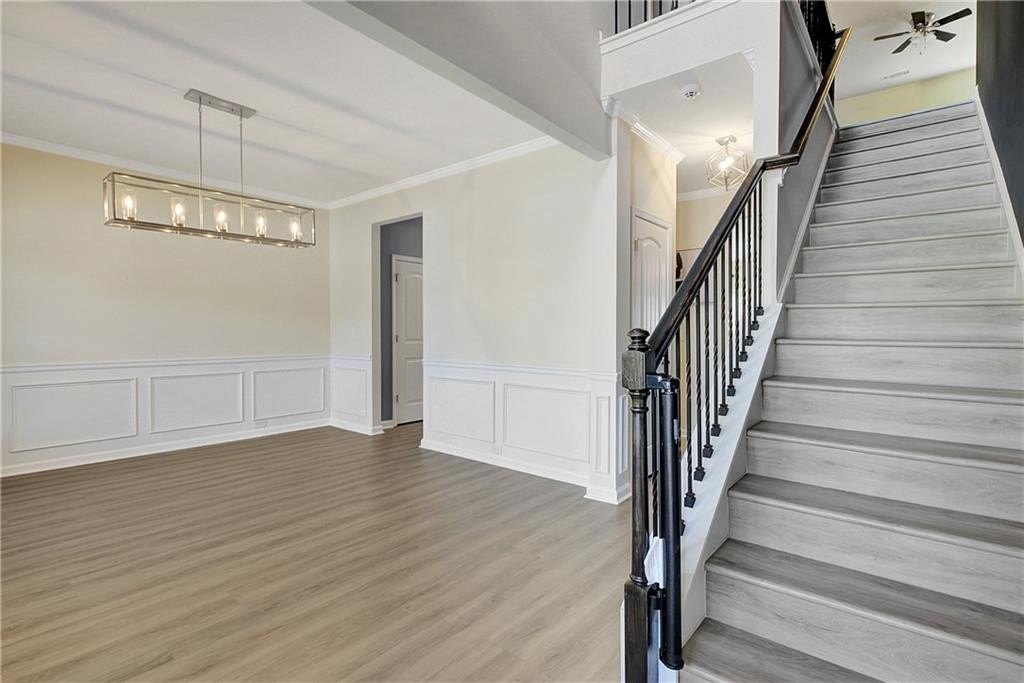 Inside, an arched entryway seamlessly connects the formal dining room to the kitchen, creating a warm and inviting space. The two-story foyer and spacious upstairs loft add to the home’s open and modern feel.