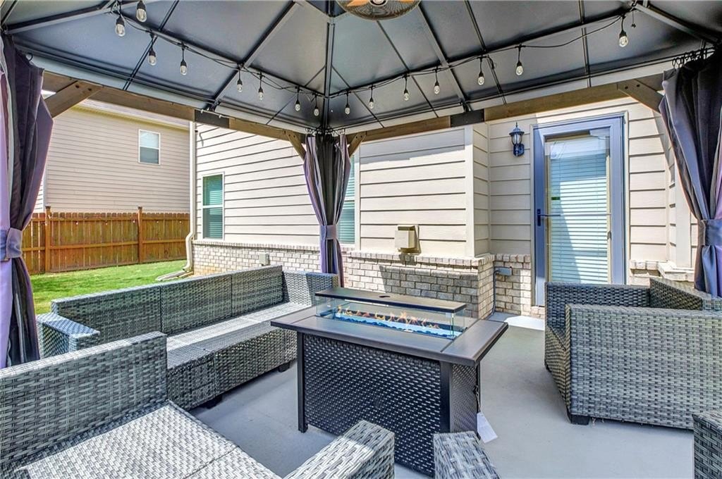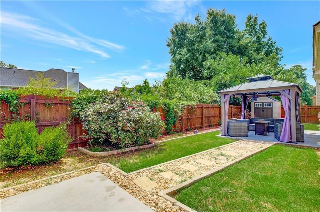 The sellers have removed all carpeting, allowing the stunning hardwood floors to shine throughout. Enjoy elegant outdoor entertaining with custom lighting and a charming gazebo, all within a fully fenced backyard.
