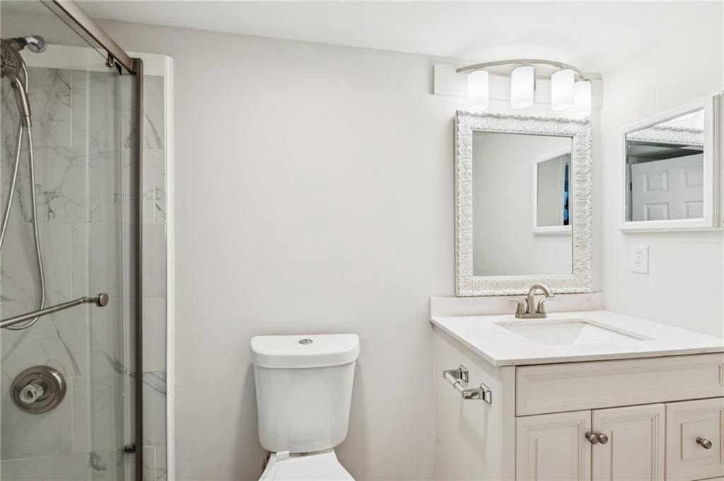 Welcome to 3053 Westwood Way – where charm meets convenience in one of Alpharetta’s best locations. This beautifully renovated 2-bedroom, 2-bathroom condo offers an inviting blend of comfort and style, perfectly located just minutes from the vibrant lifestyle destinations of Downtown Alpharetta, Avalon, Halcyon, and easy access to GA-400. Step inside to a living space that flows effortlessly into a modern kitchen complete with new kitchen cabinets, quartz countertops, appliances, tile backsplash, breakfast bar, and other premium finishes. The spacious primary suite features a walk-in closet and a beautifully remodeled en-suite bath, while the secondary bedroom provides flexibility—perfect for guests, a home office, or creative space. As second fully remodeled full bath finishes out the inside. Outside, enjoy a private porch/patio ideal for relaxing or entertaining under Atlanta’s warm skies. This condo has also been treated to all new paint, new appliances, a new gas water heater, a new AC unit and thermostat, new doors, and new flooring among other updates. With its unbeatable location near upscale dining, boutique shopping, and recreational hotspots, 3053 Westwood Way offers the best of suburban living with urban access. This is more than just a home—it’s a lifestyle. Don’t miss your opportunity to call this exceptional property your own. INVESTORS - this unit does have approval to be a rental as well. Buyer should confirm independently.