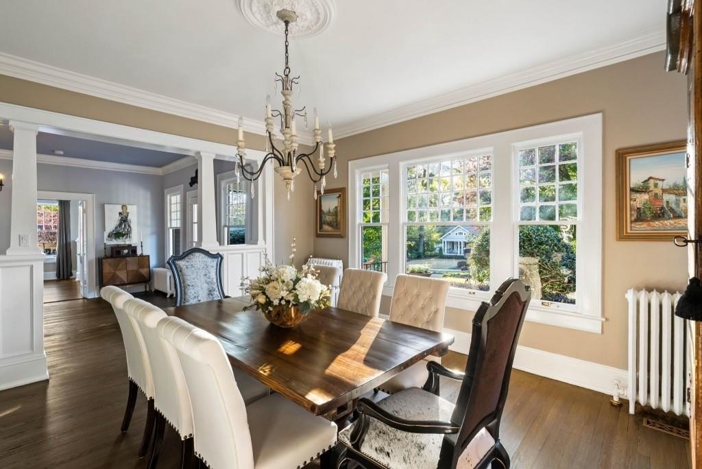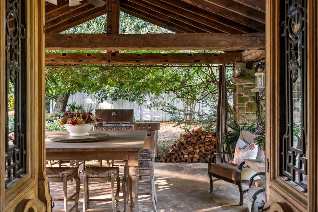 Just a short stroll from the heartbeat of Historic Marietta Square, a timeless 1917 home is surrounded by whispering magnolias and gardens that seem to tell their own story. This remarkable estate, featured twice on the Marietta Tour of Homes and twice in the Marietta Daily Journal Style Section, is more than a home - it's a living work of art. Set on nearly an acre, one of the largest lots along beloved Church Street, the property unfolds like a secret garden. Brick walkways curve past a large fountain, hand-hewn rock walls, and six distinct botanical spaces, each blooming with personality. Wisteria drapes the veranda, honeysuckle twines around an arbor, and a hidden cabana with louvered cedar walls provides a secluded retreat beneath the trees. Everywhere you look, nature and artistry dance together in perfect rhythm. Inside, the home's history speaks softly through every beam and floorboard. Over 150-year-old heart pine floors, custom cabinetry, and reclaimed wood in the kitchen ceilings - its patina a testament to time and care. Ten-foot ceilings, nine chandeliers, and original moldings echo the elegance of another era, while the renovations, completed across decades, bring thoughtful modern comfort. The kitchen is a chef's delight, with Viking and Sub-Zero appliances, custom stonework, and views that stretch into the gardens. The main-level primary suite feels like a private spa retreat, complete with a shower for two that opens to a garden view. French doors from the 1840s open to a shaded veranda, where morning light spills through the trees and the sound of water from the nearby fountain creates a sense of calm. Beyond the main house lies a charming carriage house apartment - perfect for guests and family - and a winding brick path that leads to raised gardens and a tucked-away gate. Here, just steps from Marietta's vibrant square, history, craftsmanship, and Southern grace intertwine - creating a home that is as rare as it is beautiful.