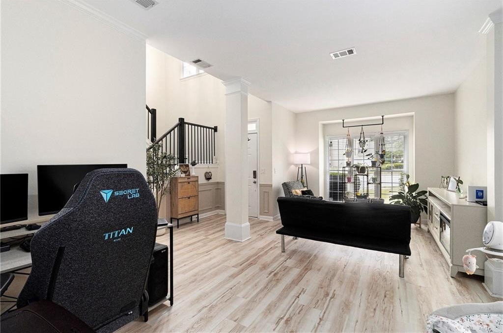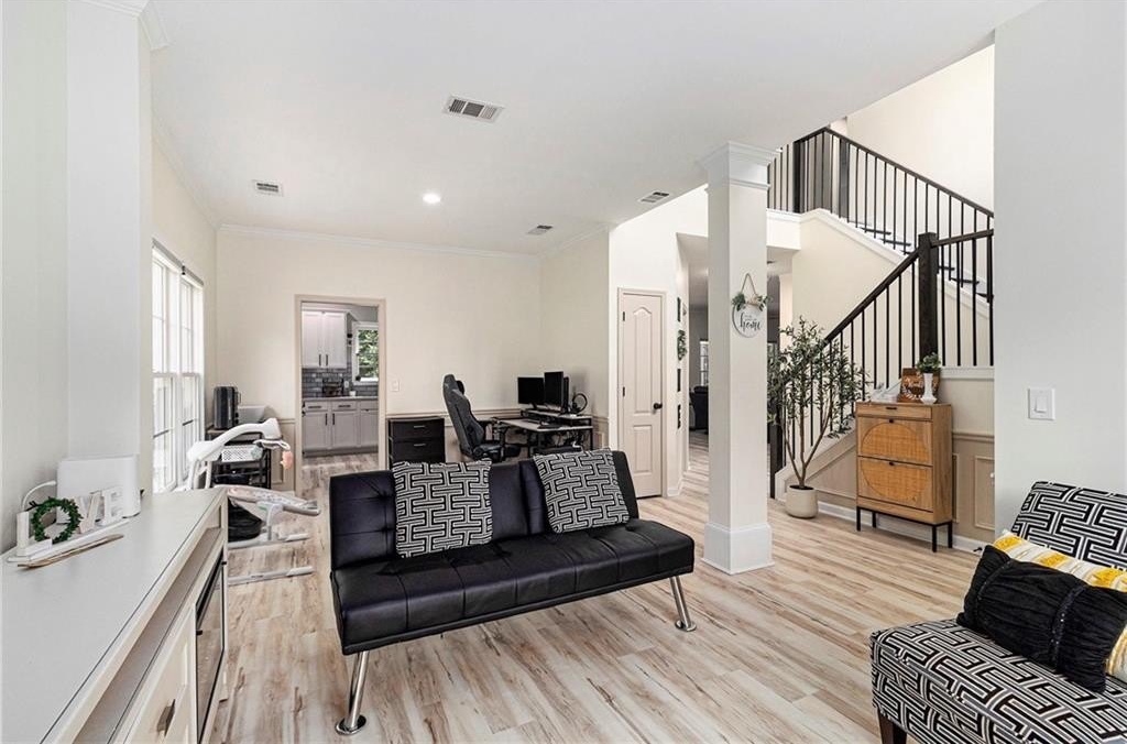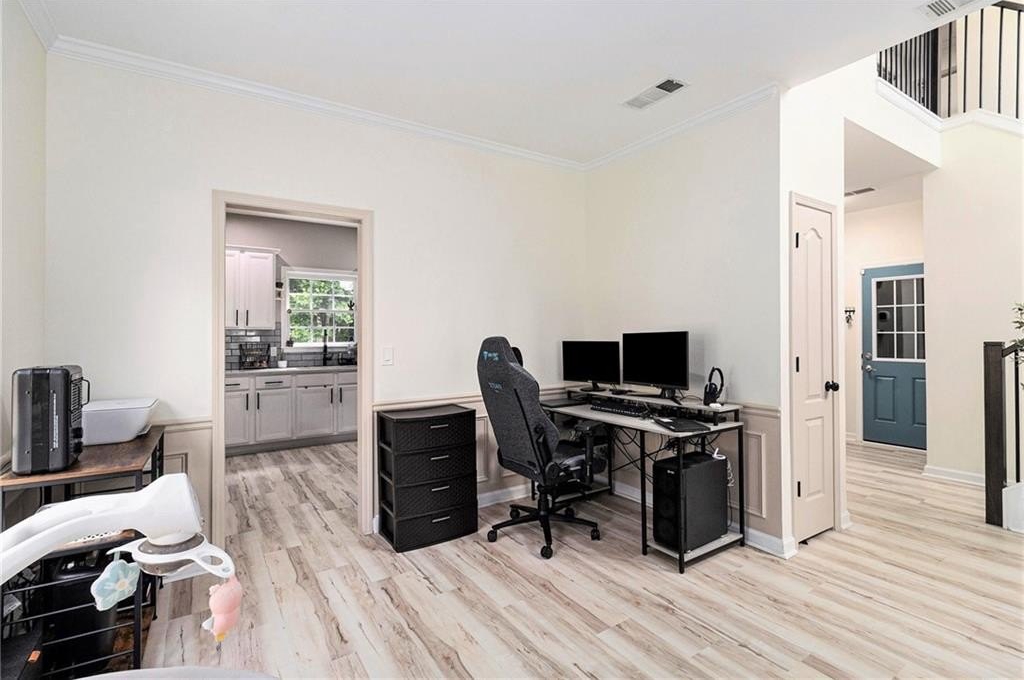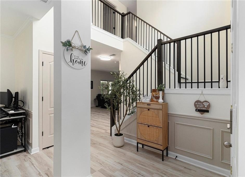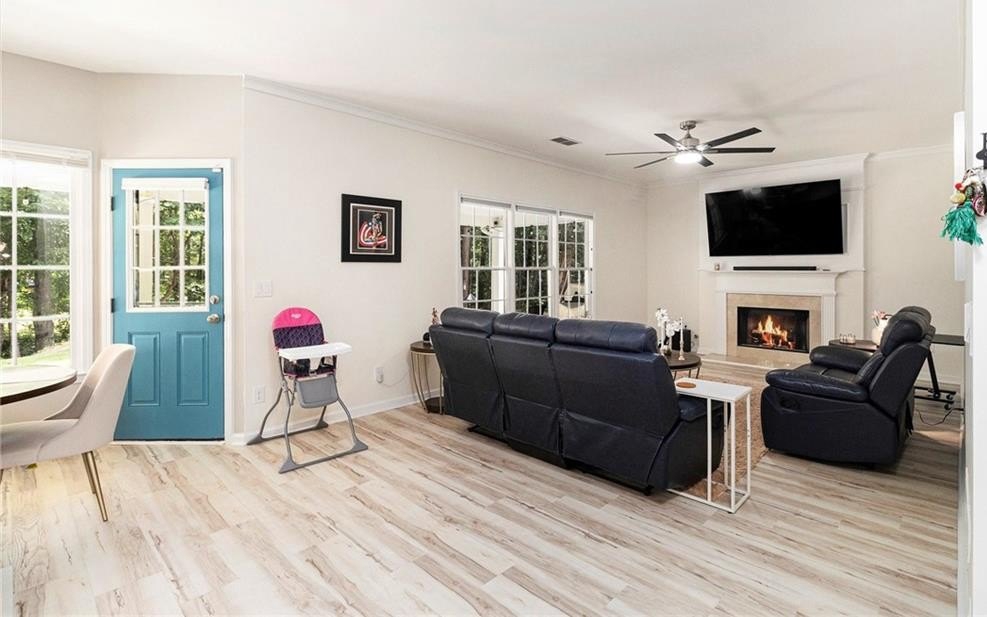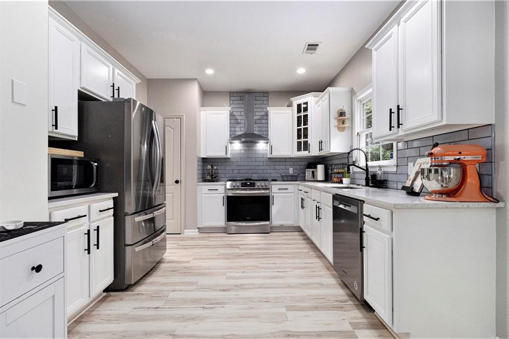 Nestled on a spacious cul-de-sac lot in the heart of historic Lawrenceville, this beautifully maintained home offers charm, elegance, and modern updates throughout. The covered front porch welcomes you in to an open airy floorplan, a dramatic two-story foyer, crown molding, wainscoting, a gas log fireplace, new durable easy to maintain LVP flooring and an updated staircase providing a feel of sophistication. The updated kitchen featuring white cabinets, stone countertops, stainless steel appliances, recessed lighting and a stylish backsplash is perfect for hosting and entertaining. The primary suite boasts tray ceilings, a walk-in closet, double vanity, tiled shower and a separate soaking tub perfect for relaxing and unwinding. Three additional bedrooms provide plenty of space for family, guests, or a home office. The large covered back patio and level backyard create an outdoor oasis whether you are looking to kick back or entertain. The community amenities include a pool, tennis courts and a playground ideal for getting together with neighbors. Conveniently located near Hwy 316, I-85, Mall of Georgia, Gwinnett College, Gas South Arena, Coolray Field, and just minutes from downtown Lawrenceville's restaurants, entertainment, and festivals. Nearby parks offer great options for outdoor recreation. Don’t miss this opportunity to own a beautifully updated home in a vibrant, historic community!