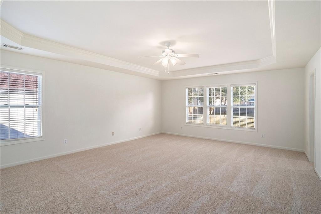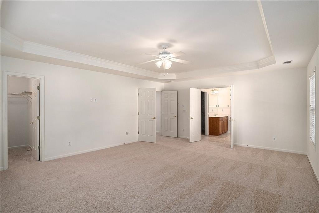 This stunning 5-bedroom, 4-full-bath home in the highly sought-after Fountain Crest community boasts a true open-concept layout and has been well taken care of on the interior and exterior. Updated mechanicals include Roof 4 years old, brand new HVAC units, and brand new water heater ensuring peace of mind to the new owners. On the interior, the spacious, light-filled features all-new paint and all-new flooring throughout, creating a fresh, move-in-ready appeal. The main level includes a convenient bedroom and full bath, while the second floor offers four additional bedrooms, including a private master suite with separate his-and-hers closets. With two en-suite bedrooms, this home provides exceptional privacy and comfort for a large family and guests. The large kitchen, complete with a center island and extra seating, is perfect for both everyday meals and entertaining. Close to restaurants and shopping, this home has it all and is ready for the new buyers.