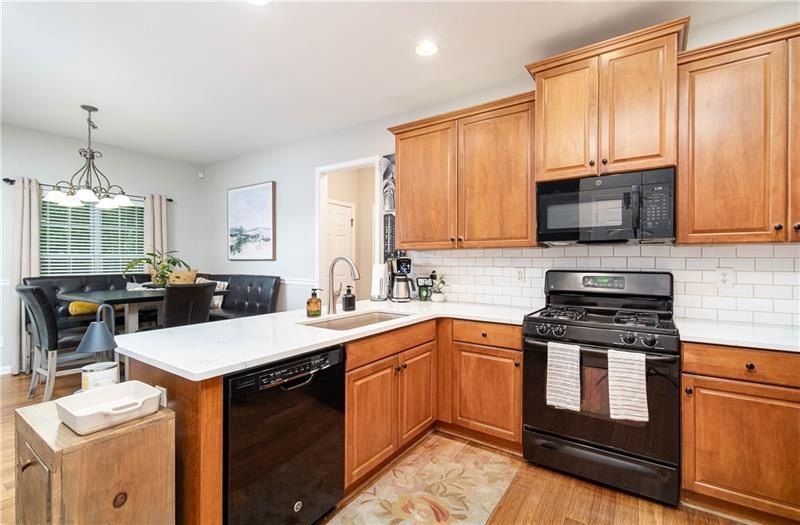 This your chance to own this STUNNING 4-Bedroom Home in Creekside Golf & Country Club - A True Gem! Welcome to this beautifully updated home nestled in the desirable Creekside Golf & Country Club community in Hiram, Georgia. This residence offers a harmonious blend of modern upgrades, spacious living areas, and a prime location in a vibrant, amenity-rich neighborhood in the South Paulding High School District. KEY FEATURES: Gourmet Kitchen: Enjoy cooking in a kitchen adorned with elegant quartz countertops and custom wood cabinetry, providing both style and functionality. Elegant Flooring: The main floor boasts stunning bamboo hardwoods, adding warmth and sophistication throughout the living spaces. Vaulted Living Room: Relax in the expansive living room featuring 12 ft ceilings and a striking stone-stacked fireplace, creating a cozy yet grand atmosphere. Private Owner's Suite: The main-level owner's suite offers a peaceful retreat with a bay window and a spacious ensuite bathroom complete with a double vanity and glass framed shower and soaking tub. Finished Basement: The fully finished basement adds approximately 800 sq ft of living space, including a large open area making a great space for a secondary living area or an exercise room with French doors leading to the fenced backyard and an additional finished room of about 500 sq ft, perfect for a home office, gym, or playroom. The unfinished basement has all the storage you will need plus a perfect workshop area! The shed out back provides additional space for all the landscaping equipment. MODERN UPDATES: Peace of mind comes with recent updates, including a new roof, water heater, and an AC Unit all replaced within the last 2-4 years. The deck was also replaced during this timeframe. OUTDOOR LIVING: Step outside to a private, fenced backyard, ideal for entertaining or enjoying quiet moments. The home is situated just off the tranquil cul-de-sac, ensuring minimal traffic and added privacy. Community Amenities: LIVING IN CREEKSIDE Golf & Country Club means embracing a lifestyle of leisure and recreation. Residents have access to: 18-Hole Golf Course: Perfect your swing on the beautifully maintained course that winds through the community. Country Club Restaurant: Close by for an easy meal. Community Activities: Throughout the year, there is trivia, junior golf, meet and greets, or host your own party at the clubhouse! Swimming Pool: Take a dip in the sparkling pool, ideal for relaxation and social gatherings. Tennis Courts: Stay active and enjoy friendly matches on the community's tennis courts. Clubhouse: The clubhouse serves as a hub for social events and community activities, fostering a strong neighborhood spirit. PRIME LOCATION: Conveniently located near shopping, dining, and entertainment options, this home offers both tranquility and accessibility. Whether you're looking to relax at home or explore the vibrant community, this residence provides the perfect setting. 6 miles from White Oak Park, Publix,and South Paulding HS, 2 miles from Kroger and Ingles, and 10 minutes to I-20. Don't MISS the VIRTUAL TOUR: LINK: https://youtu.be/4bnL6LElfvY