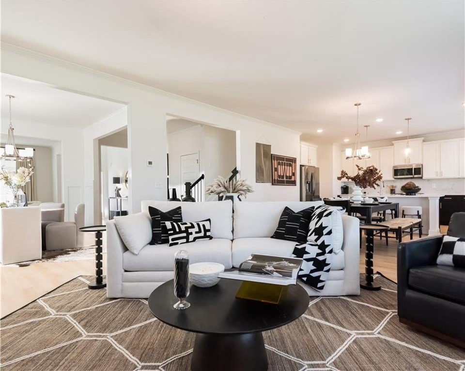 Lot #100-The Inwood plan is a sophisticated, 4-bedroom, 2.5-bathroom home with basement. Designed with an open concept. It features a formal living and dining room, creating an elegant space for entertaining. The kitchen offers a view of the family room, which includes a cozy fireplace, and is equipped with a spacious island with granite countertops, stainless steel appliances, and ample cabinet space. The walk-in pantry provides additional storage. The home is filled with natural light from numerous windows. The master bedroom is a luxurious retreat with a SITTING AREA and a trey ceiling. The laundry room is conveniently located upstairs along with spacious secondary bedrooms. Pictures are builder stock photos.