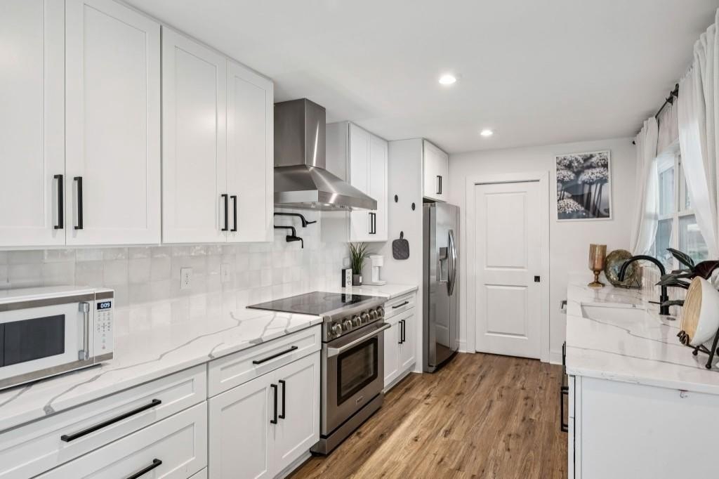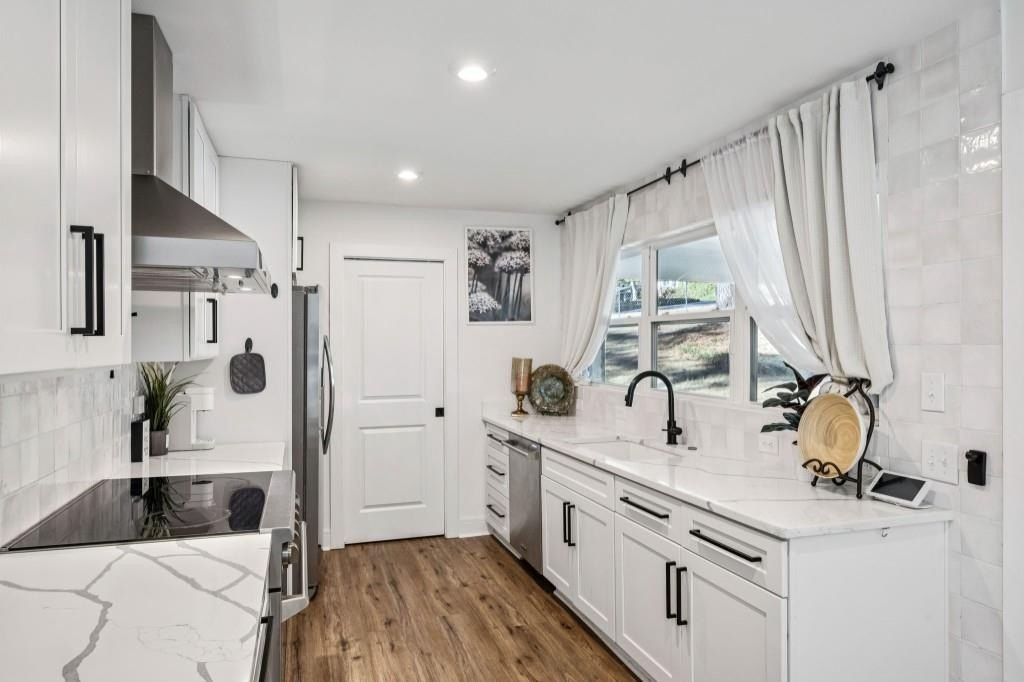 Beautifully Renovated Ranch with a Finished Basement in Kelley Lake! Curb appeal shines with this Updated White Brick Ranch set on a Spacious Lot surrounded by Mature Trees. A charming Covered Front Porch and Carport welcome you home. Step inside to find a Bright, Open Floorplan with Sleek, Modern Finishes throughout. The Stylish Kitchen is a showstopper featuring Quartz Countertops with Striking Veining, White Shaker Cabinets, Stainless Steel Appliances, and a Premium Thor Gas Range. A Walk-In Pantry offers tons of storage, and the nearby Breakfast Nook flows effortlessly into the Light-Filled Family Room, perfect for relaxing or entertaining. Down the hall, you'll find Three Spacious Bedrooms and Two Beautifully Renovated Bathrooms, including a Primary Suite with an Ensuite Bath featuring a Walk-In Shower with Chevron Tile. The Fully Finished Basement offers endless flexibility with Two Additional Bedrooms, a Full Bath, a Dedicated Office, Laundry Room, Den, and a Second Kitchenette ideal for Guests, Extended Family, or a potential Income-Producing Suite. With its own Private Entrance and Driveway, it's ready for whatever your lifestyle needs. Outside, enjoy the Large, Fenced Backyard with space to garden, play, or entertain beneath the canopy of tall pines. All of this in the sought-after Kelley Lake Community, just minutes from Candler-McAfee, East Lake Park, East Lake Golf Club, and all your favorite Intown Neighborhoods. Easy access to I-20, I-75, I-85, and MARTA makes commuting a breeze, and local dining and shopping add to the everyday convenience. Don't miss this move-in-ready home that perfectly blends Modern Style, Comfort, and Investment Potential in one of Atlanta's most desirable intown neighborhoods!