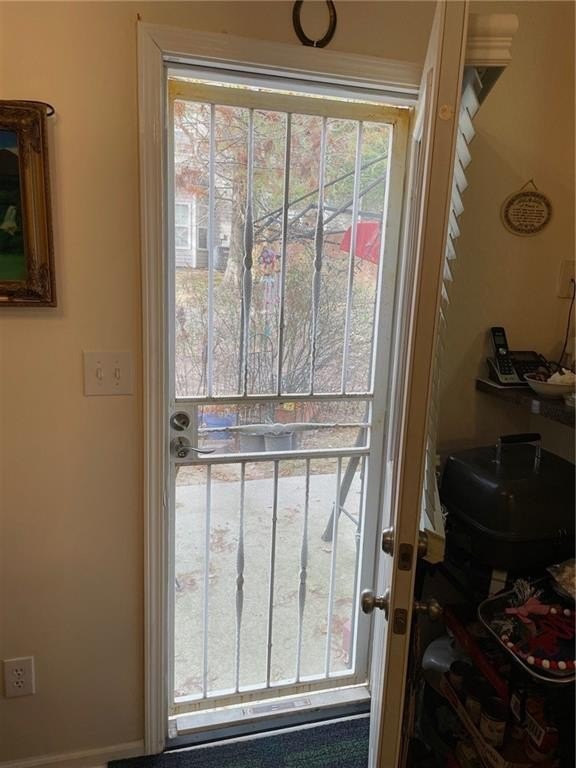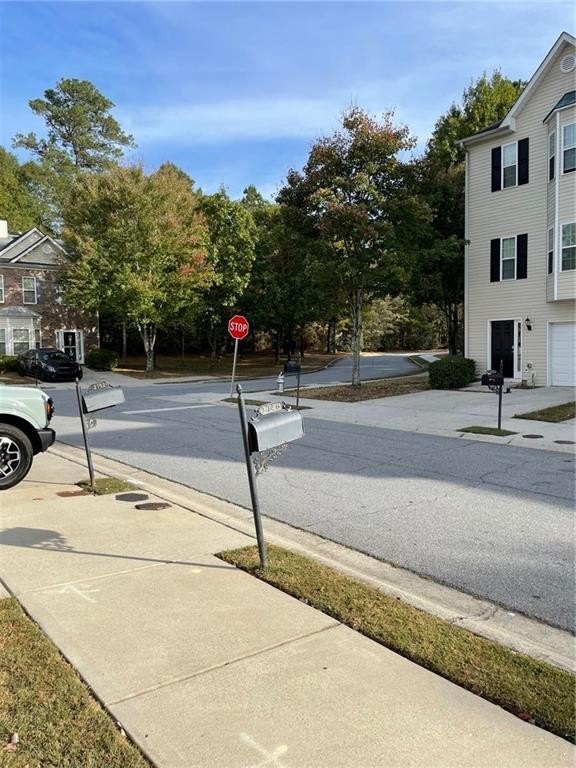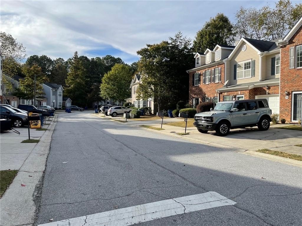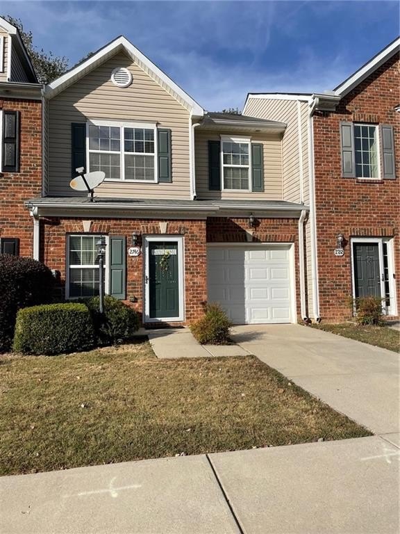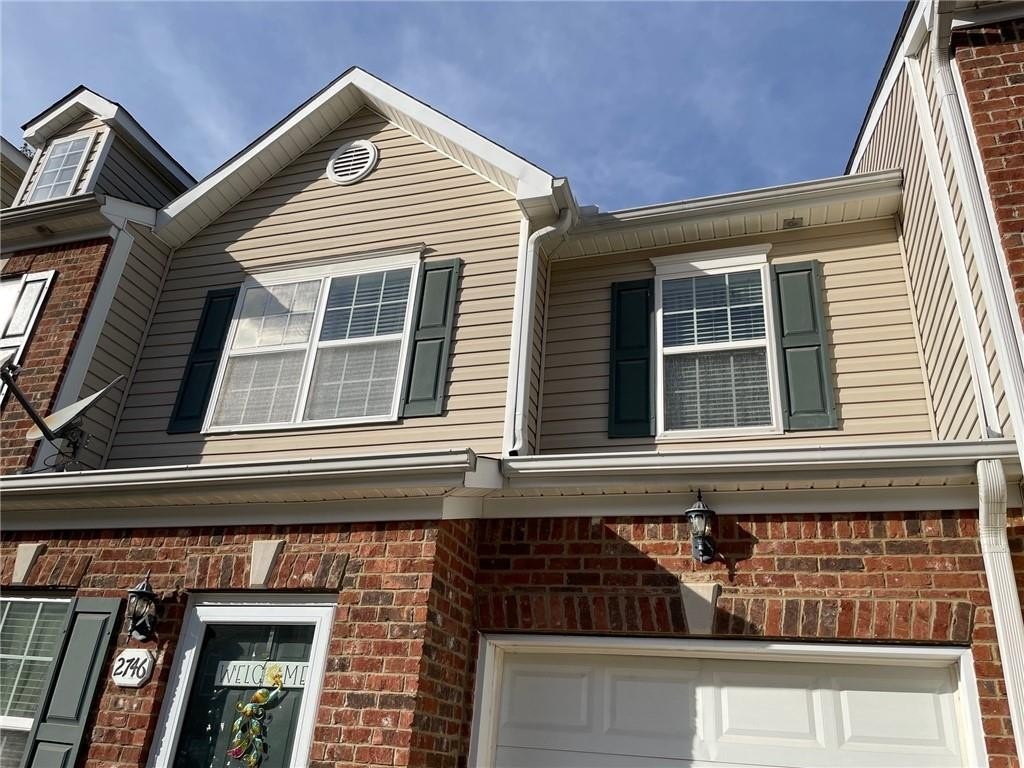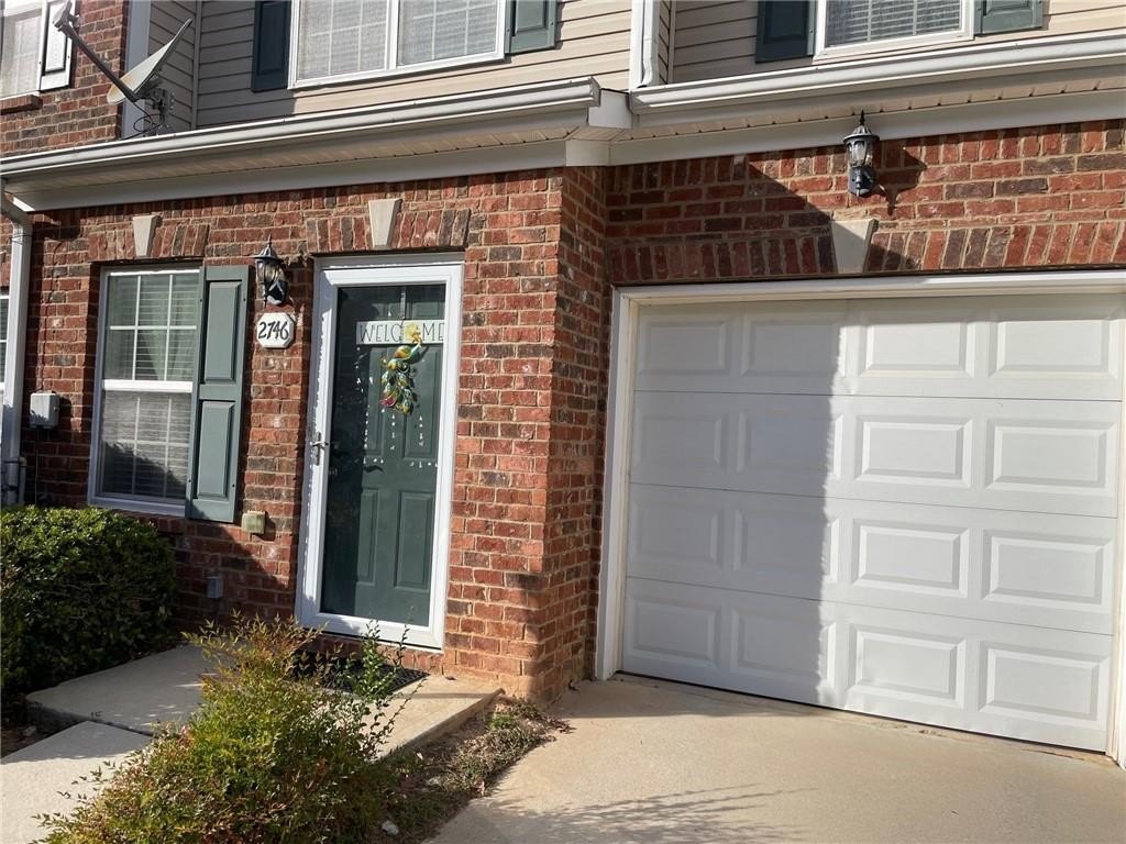 Charming 2 story townhome / townhouse for sale in unincorporated South Fulton County. - Townhome / Townhouse is a 1400 square feet unit, with 9 ft ceilings on main level - Two (2) bedrooms and 2.5 bathrooms - Brick front with 1 car parking pad, plus convenient guest parking spots across the street - Individual mail box, plus streetlamp lighting near door - Smooth ceiling and rounded wall curves (radius corners) - Huge kitchen with generous countertop space - Each bedroom has its own private bath - Trey ceiling plus ceiling fan in master bedroom - Vaulted ceiling and garden tub in master bathroom - Several appliances included: refrigerator, gas stove, microwave, dishwasher, washer and dryer - Formal living room with gas fireplace and mantle, crown molding/trim along perimeter - Chair rail with picture frame molding in formal dining room - French Doors to patio - Home is wired for alarm system - Custom wood blinds included - Quiet neighborhood, conveniently located 3 miles from I-285 and I-85, ten minutes from Atlanta Airport - New shopping center (including Wal-Mart, Zaxby's, Ross, etc) located a few blocks away