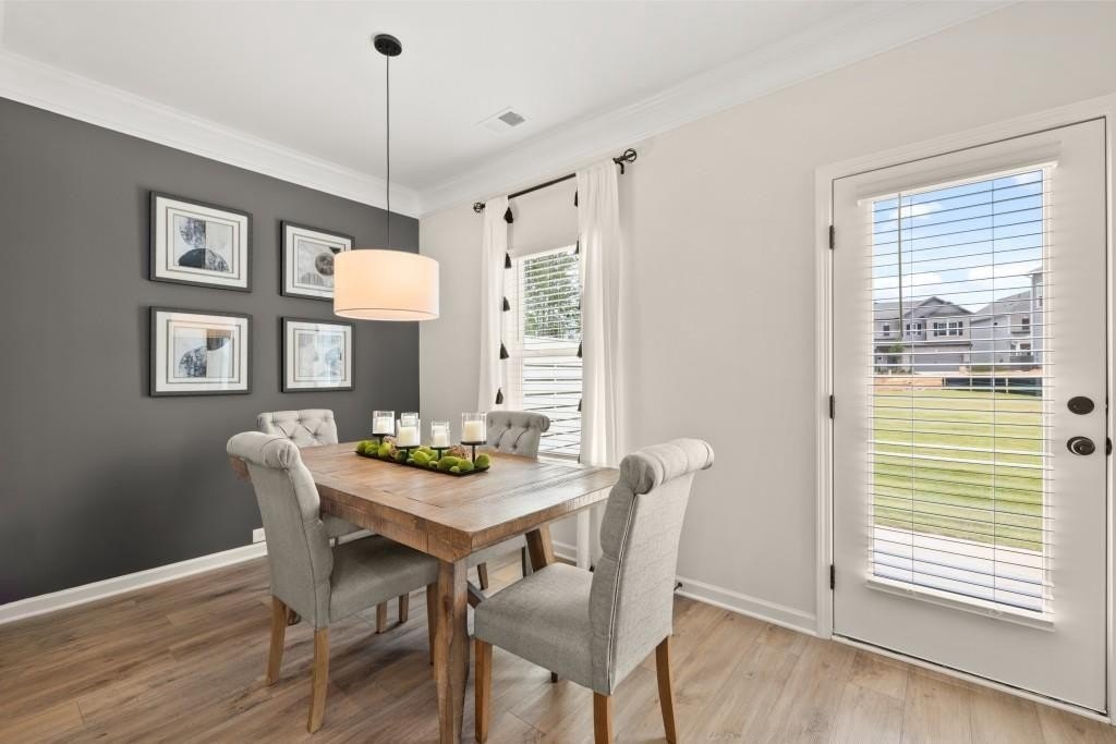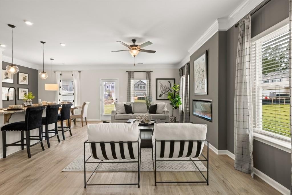 Move in Ready! The Norwood II floorplan in Smith Douglas Homes Franklin Manor community. Fantastic Location! Take advantage of EXTRA special seller incentives with use of preferred lender. This thoughtfully designed townhome is one of our most sought-after floorplans and is an end unit!!! Perfectly positioned natural light, this home offers exceptional comfort and designer upgrades throughout. All home blinds included. The kitchen features stylish upgraded cabinetry, stainless appliances, quartz counters, and a center island with pendant lighting. The kitchen flows seamlessly to the bright family room enhanced by large windows and a modern linear fireplace. Throughout the main floor, luxury vinyl plank flooring provides both durability and style, while the beautiful private deck offers a relaxing spot for weekend get togethers. Upstairs, retreat to the Primary suite, with a walk-in closet and spa-inspired bath featuring a tiled shower and double vanity. Two additional bedrooms, and a convenient laundry room complete this level. Both stories have 9ft ceiling heights. Lawn maintenance as well as the exterior is included in your HOA! Photos representative of plan not of actual home. Don't miss this opportunity to make this home yours, schedule your private tour today! Be in by end of year!