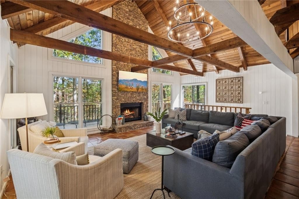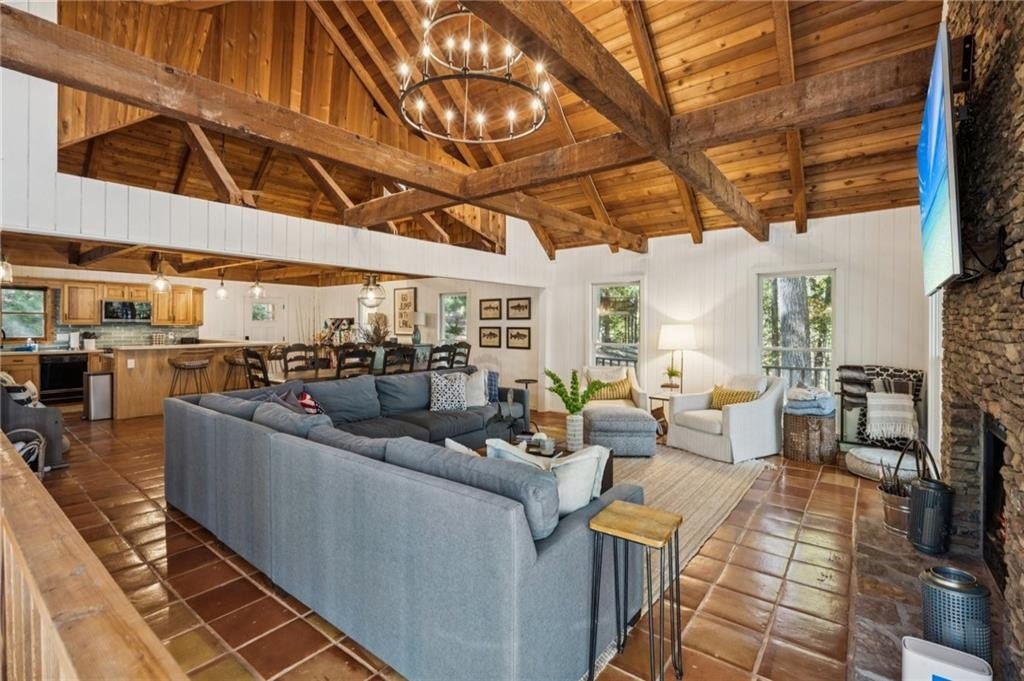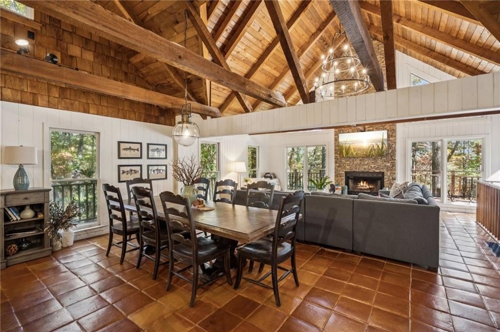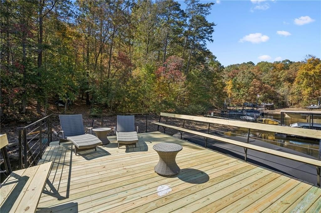 Your ideal Lake Lanier escape—fully renovated and move-in ready! Trade city bustle for this charming lakeside cabin vibe. Enter to find an inviting open floor plan with dramatic vaulted ceilings, instantly transporting you to a mountain retreat—while steps from the water with your own single-slip dock and upper party deck in a deep swimmable cove. Glide to the main channel in just 1–2 minutes!! A short easy stroll down to the dock by foot or golf cart! Year round lake views through the trees with full vistas in fall and winter~ The main floor boasts 2 bedrooms and 2 fully updated baths. Owners have enclosed the oversized loft—perfect for guests, office, or kids’ hangout, with built-in sleeping for 8, new mini-split, and designer wool carpeting! The lower level features a finished bonus/rec room with new bathroom + laundry room, sconce lighting pre-wired for future bar, and new LVP flooring!  Unbeatable south-lake spot with quick access from GA-400 or I-985. Nearest fuel at Athens Boat Club, and a scenic 20-minute cruise to Gainesville Marina (Skogies) or Port Royale (Pelican Pete’s) for lakeside meals. Launch at dusk for front-row sunset views. Dawsonville shops and dining minutes away; Gainesville just 15 minutes by car.   Other 2022+updates include All-new solid-core doors + hardware, fresh paint, new HVAC, water heater, mini-split, sump pump , New septic drain field. In the Kitchen: new backsplash, plumbing, microwave  All Bathrooms have been remodeld and reconfigured. On the Dock, all boards replaced, railings painted, and electrical updated! Lake living starts here—make it yours before spring!