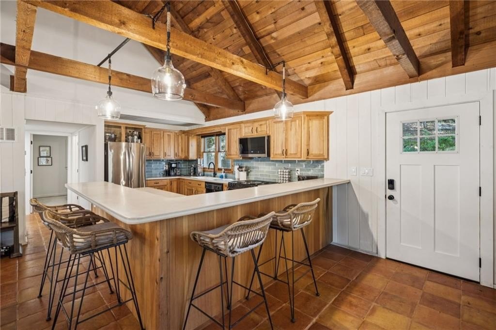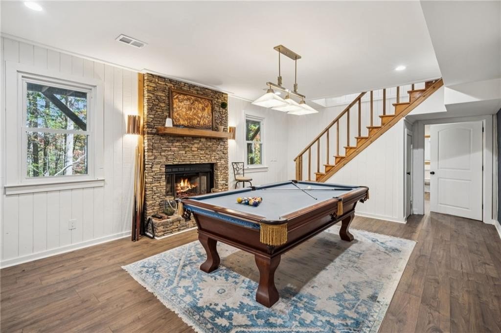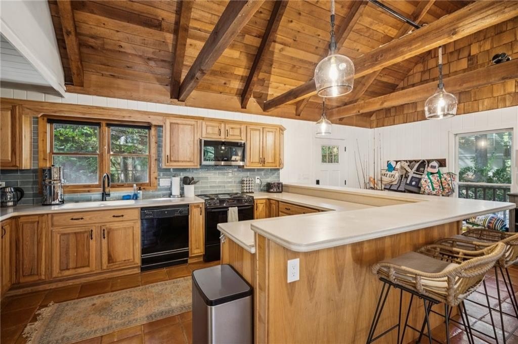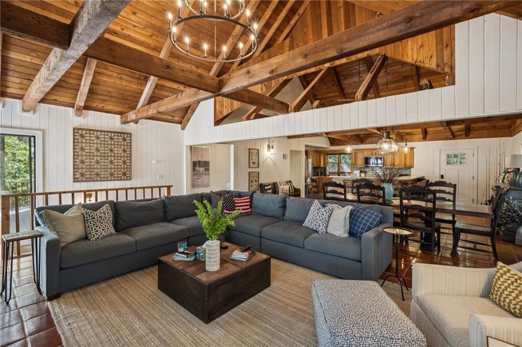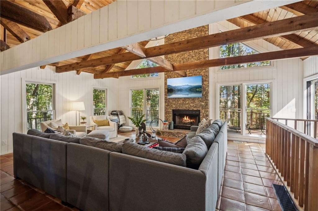 Your ideal Lake Lanier escape—fully renovated and move-in ready! Trade city bustle for this charming lakeside cabin vibe. Enter to find an inviting open floor plan with dramatic vaulted ceilings, instantly transporting you to a mountain retreat—while steps from the water with your own single-slip dock and upper party deck in a deep swimmable cove. Glide to the main channel in just 1–2 minutes!! A short easy stroll down to the dock by foot or golf cart! Year round lake views through the trees with full vistas in fall and winter~ The main floor boasts 2 bedrooms and 2 fully updated baths. Owners have enclosed the oversized loft—perfect for guests, office, or kids’ hangout, with built-in sleeping for 8, new mini-split, and designer wool carpeting! The lower level features a finished bonus/rec room with new bathroom + laundry room, sconce lighting pre-wired for future bar, and new LVP flooring!  Unbeatable south-lake spot with quick access from GA-400 or I-985. Nearest fuel at Athens Boat Club, and a scenic 20-minute cruise to Gainesville Marina (Skogies) or Port Royale (Pelican Pete’s) for lakeside meals. Launch at dusk for front-row sunset views. Dawsonville shops and dining minutes away; Gainesville just 15 minutes by car.   Other 2022+updates include All-new solid-core doors + hardware, fresh paint, new HVAC, water heater, mini-split, sump pump , New septic drain field. In the Kitchen: new backsplash, plumbing, microwave  All Bathrooms have been remodeld and reconfigured. On the Dock, all boards replaced, railings painted, and electrical updated! Lake living starts here—make it yours before spring!
