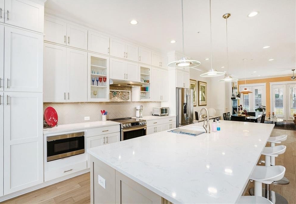 The main level boasts 10’ ceilings, a fireside family room, elegant dining area with new designer lighting, and a light, bright sunroom with an adjacent keeping room—ideal for relaxing or entertaining. The chef’s kitchen shines with new induction LG range, new Bosch dishwasher, new Sharp microwave drawer, new garbage disposal, new under-cabinet lighting, new cabinet hardware, and new lighting fixtures, all beautifully complemented by quartz countertops and a custom herringbone tiled backsplash.
