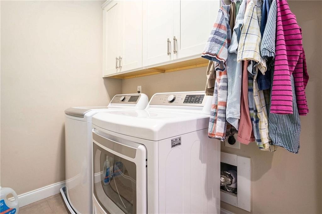 The terrace level provides a full bath with new shower hardware and versatile living area—perfect for a guest suite, gym, or hobby/playroom—a home safe, and custom designer wallpaper. Interior paint throughout the entire home.