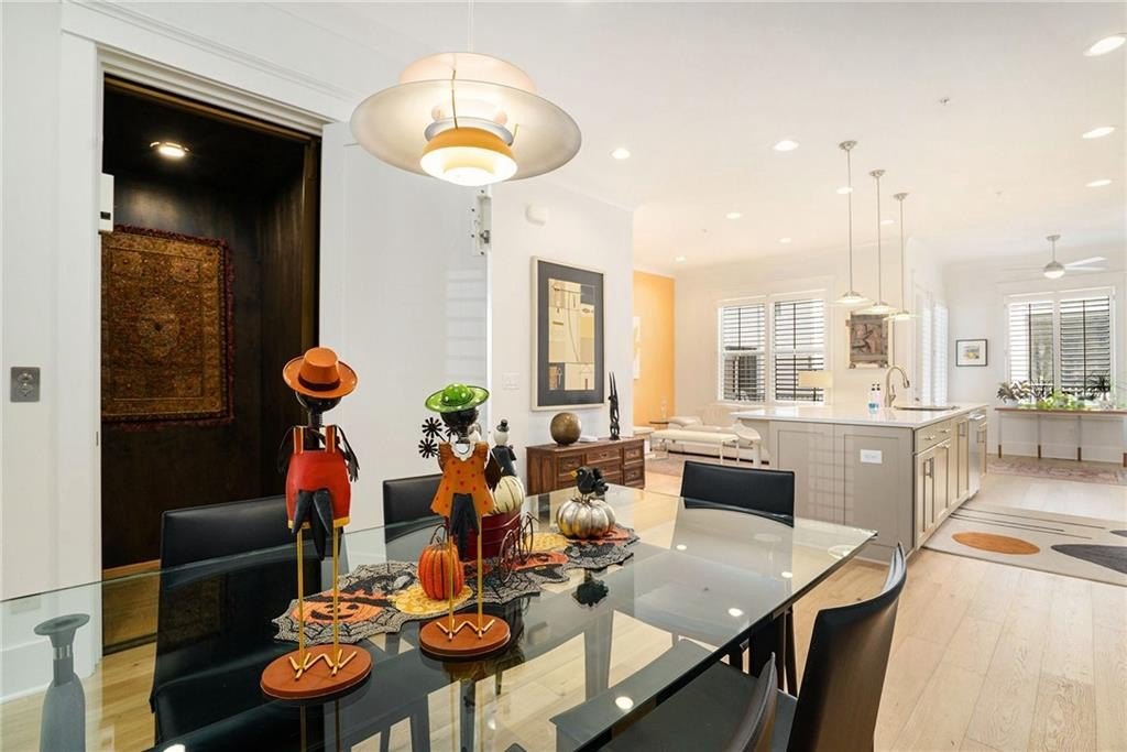 This exceptional home features an elevator to all levels (inspected annually), brand new hardwood floors on the top three levels with a lifetime transferrable warranty, and plantation shutters throughout.