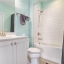 * New powder room vanity, mirror, lighting, and plumbing hardware