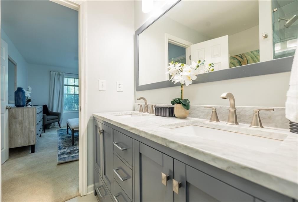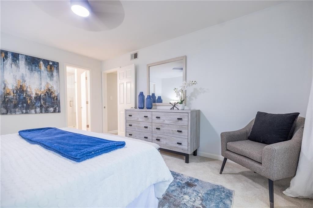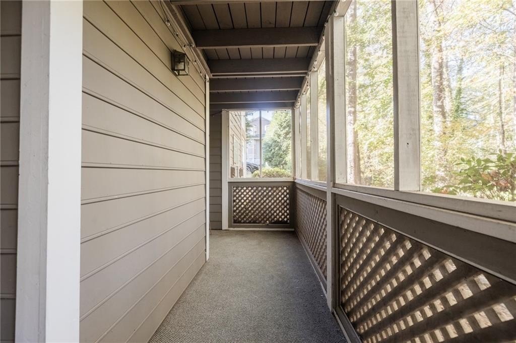 Welcome to your updated and spacious end-unit home in a great location! This 2-bedroom, 2-bathroom condo with a bonus office space has everything you need to live, work, and relax in style. Start by kicking back on the private, covered front porch, and then step inside to discover a beautifully renovated space that’s perfect for everyday living and entertaining. The open layout features a cozy fireplace, a bar for hosting friends, and a super versatile flex space off the living room—ideal for a home office, yoga spot, or playroom. The kitchen is a total win with gorgeous countertops, stainless-steel appliances, a big pantry, and plenty of cabinet storage. When it’s time to unwind, head to the primary bedroom, complete with a walk-in closet and a private en-suite bathroom featuring dual sinks, a linen closet, and a sleek glass-enclosed tile shower. One of the best features is the screened-in porch! It’s the perfect spot to relax and enjoy the view of the private wooded lot. There’s also weatherproof storage off the screened-in porch as well. This location couldn’t be better, with easy access to 285, 85, and 141, making it super convenient to get anywhere in the city. Plus, the community has great perks like a swimming pool and a community area for grilling and entertaining with neighbors and friends. You’re also just a short walk to Brook Run Park and Chesnut Elementary School.
