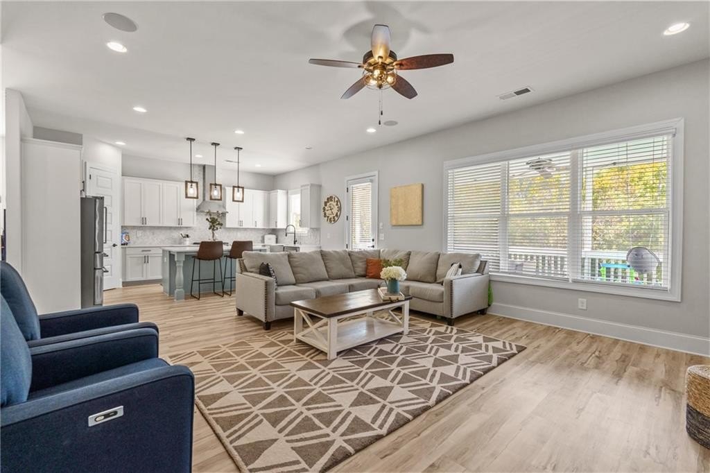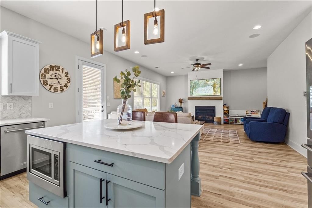 Stunning, nearly new craftsman in highly desired West Highlands offering bright open-concept living, 10’ ceilings on main, and a full unfinished basement with major expansion potential. Inviting foyer opens to spacious family room with gas-log fireplace. Chef-inspired kitchen with white cabinetry, quartz countertops, stainless appliances, large island and breakfast area. Separate dining room for hosting and special occasions.